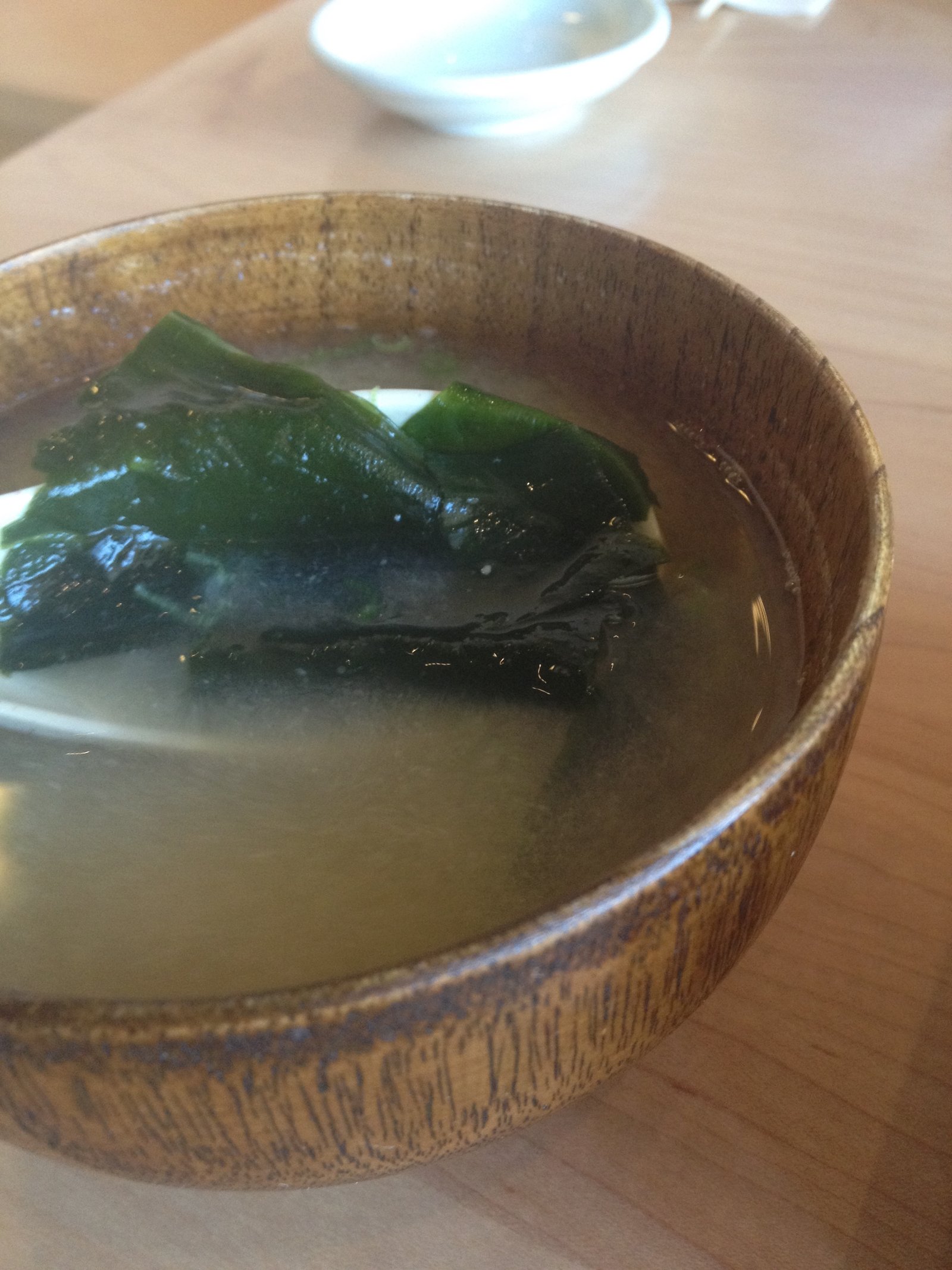 The miso soup is crisp, clean tasting with an excellent seaweed.