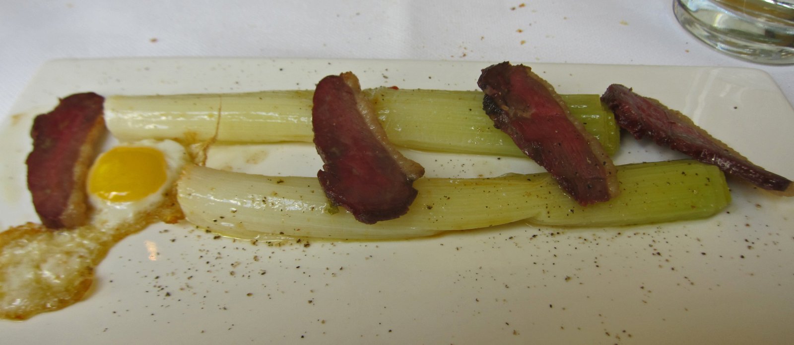 This was probably our least favorite dish; the cured duck was quite bland and dry, the leek was fine, but this is like something I'd make at home and really didn't seem to be worth 14 Euros.
