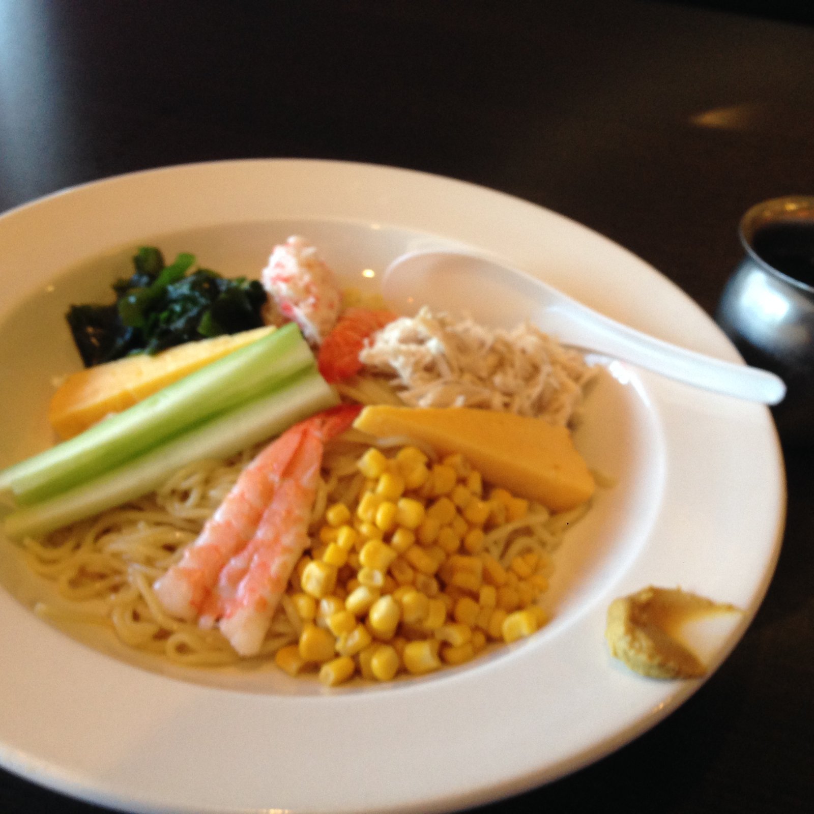 Which meant that I had to complete the trifecta of visits. By this time the weather had turned; well quite warm. In fact, we had a few days of record high temperatures. I looked thru the menu and saw the Reimen, basically Hiyashi Chuka.