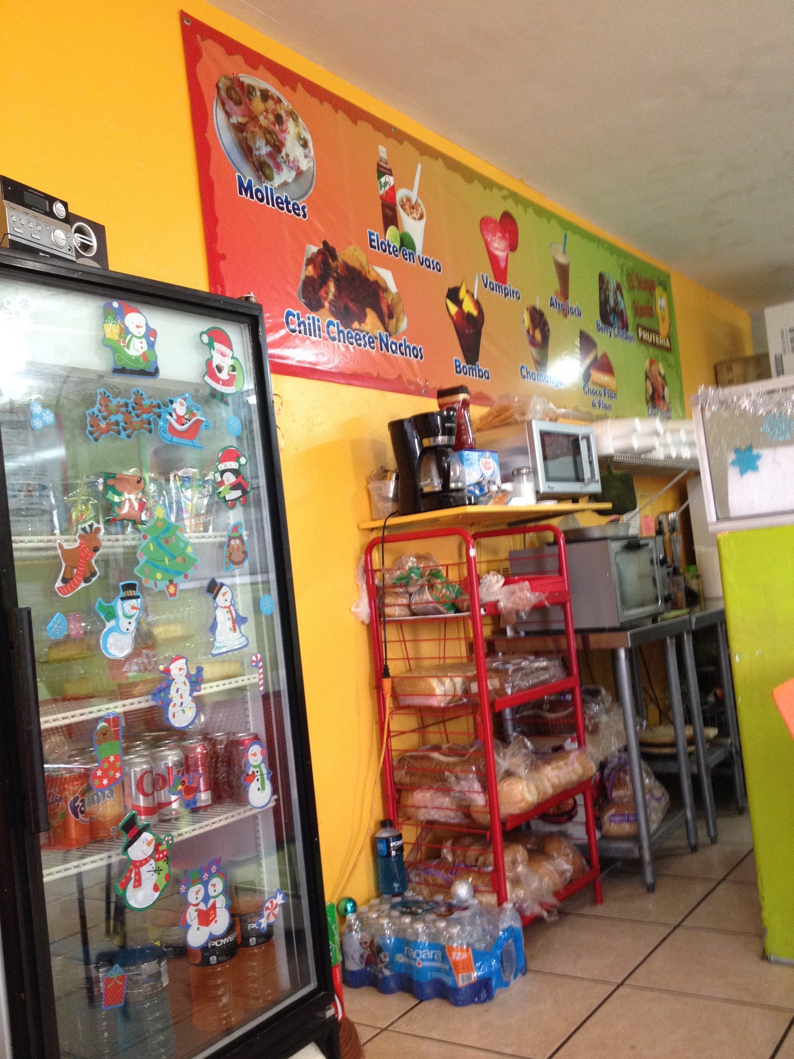 The menu is fairly extensive. Breakfasts here include molletes (my favorite) and there are tortas, sandwiches, green and fruit salads, juices, smoothies, licuados (milk based) and raspados (ices) and a variety of 'Crazy' menu items ('crazy' means cups of fresh corn topped with cheese, tostilocos, churrolocos, Takilocos and fruitilocos as well as a few other items).