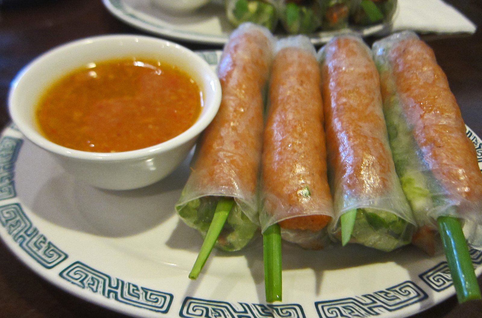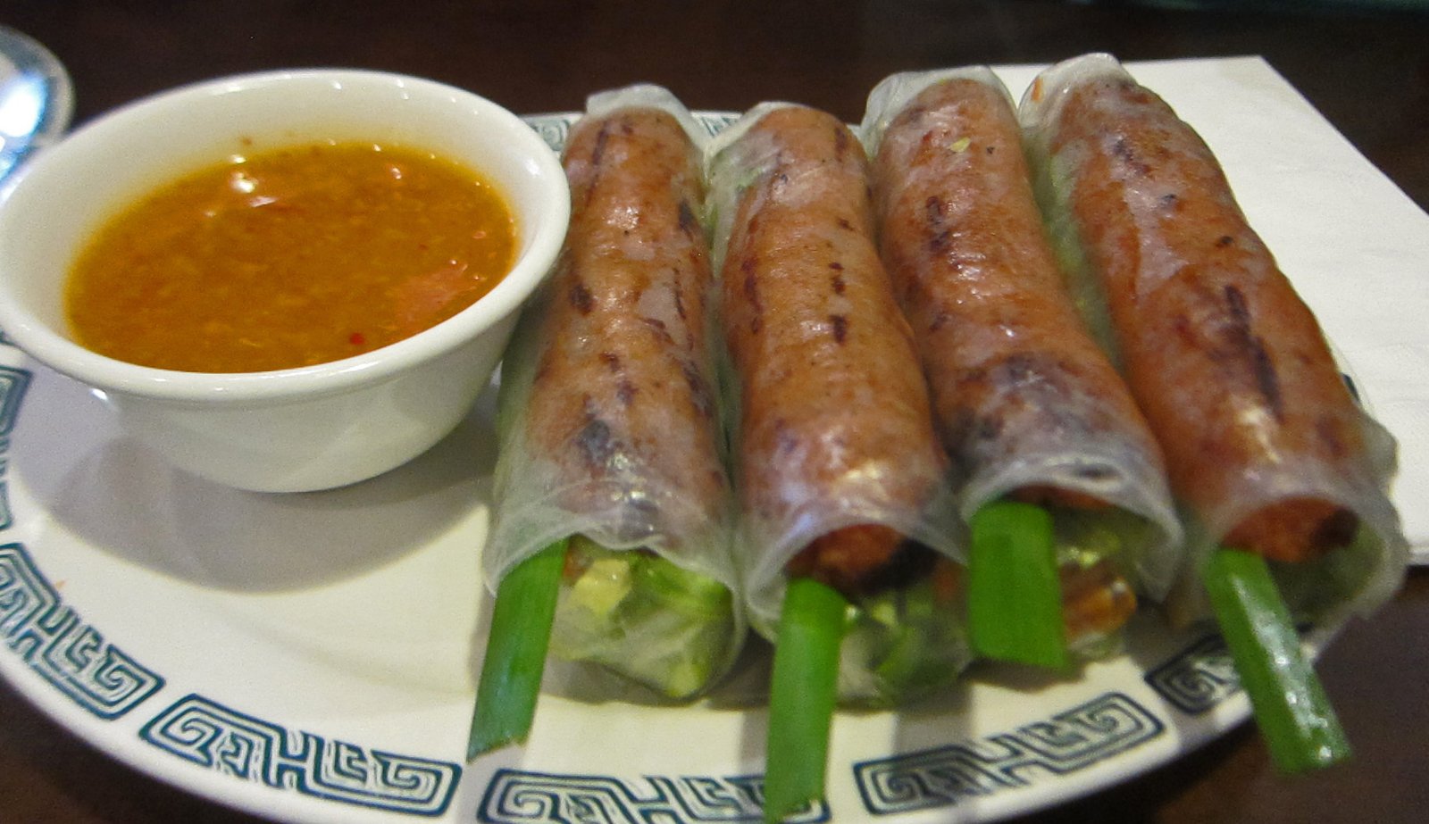 As before the Nem Nuong, the pork "sausage", was much better, more flavor, nicely grilled, and the addition of a touch of herbs along with the scallion complements the flavor of the meat. The Chao Tom, is a bit too rubbery and "squeaky" for me and is quite bland….which comes to the sauce….I keep on meaning to just get nuoc mam cham, the sauce here is not very good, very bland, lacking in flavor.