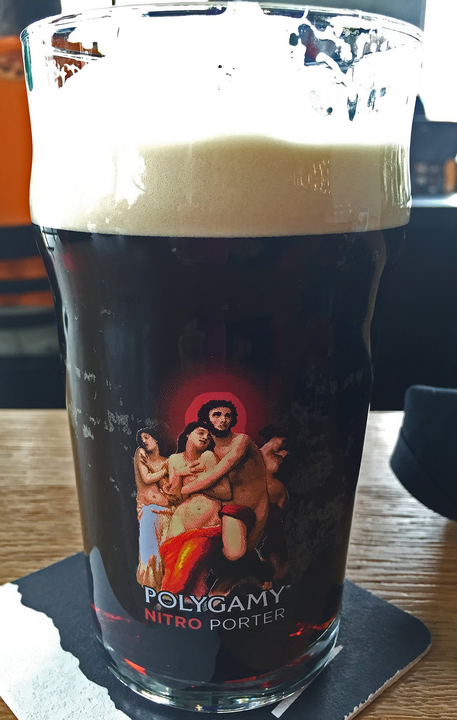 And then the Missus saw the beer I "just had to order"…. the Polygamy Porter on Nitro….yep, you heard that right. I just can't help but crack up. I loved the glass….in fact, the Missus and I should have bought a couple for our friends. And then there's the beer's tagline; "Why have just one…." You gotta love it…