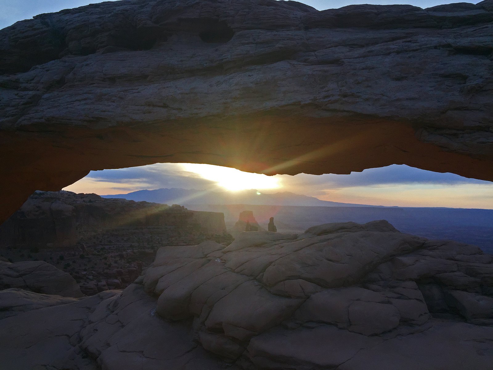 The Missus hung back and took a photo of the sunrise through the Mesa Arch.