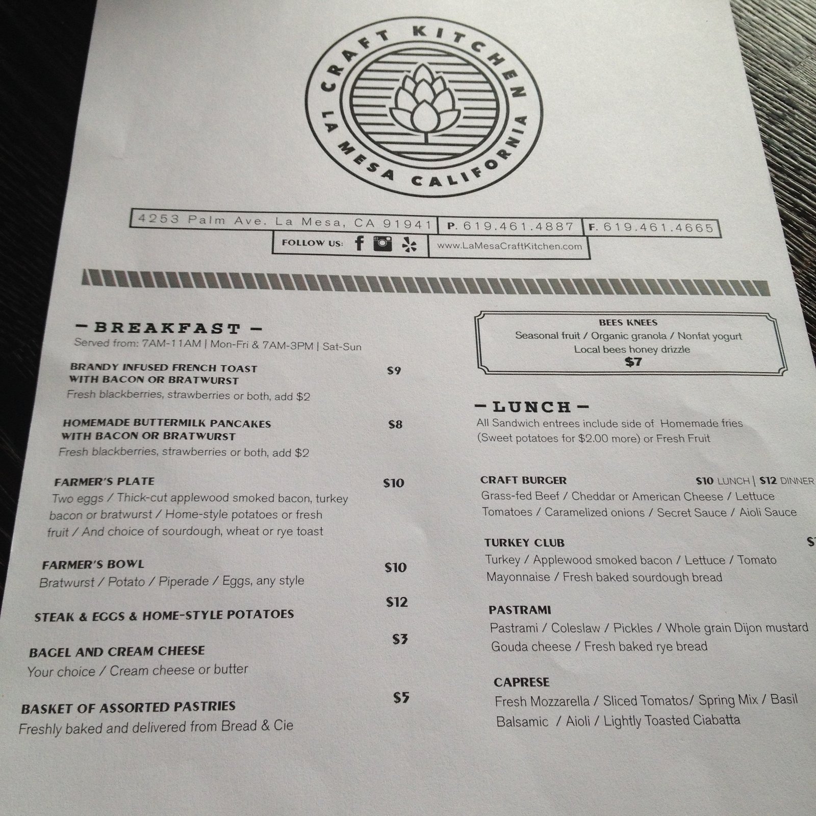 La Mesa (and its border) is gradually becoming the East County version of 30th Street, with a few stumbles and successes, with established gastropub/regular pub type restaurants. The concept of breakfast at Craft Kitchen will be thoroughly investigated.