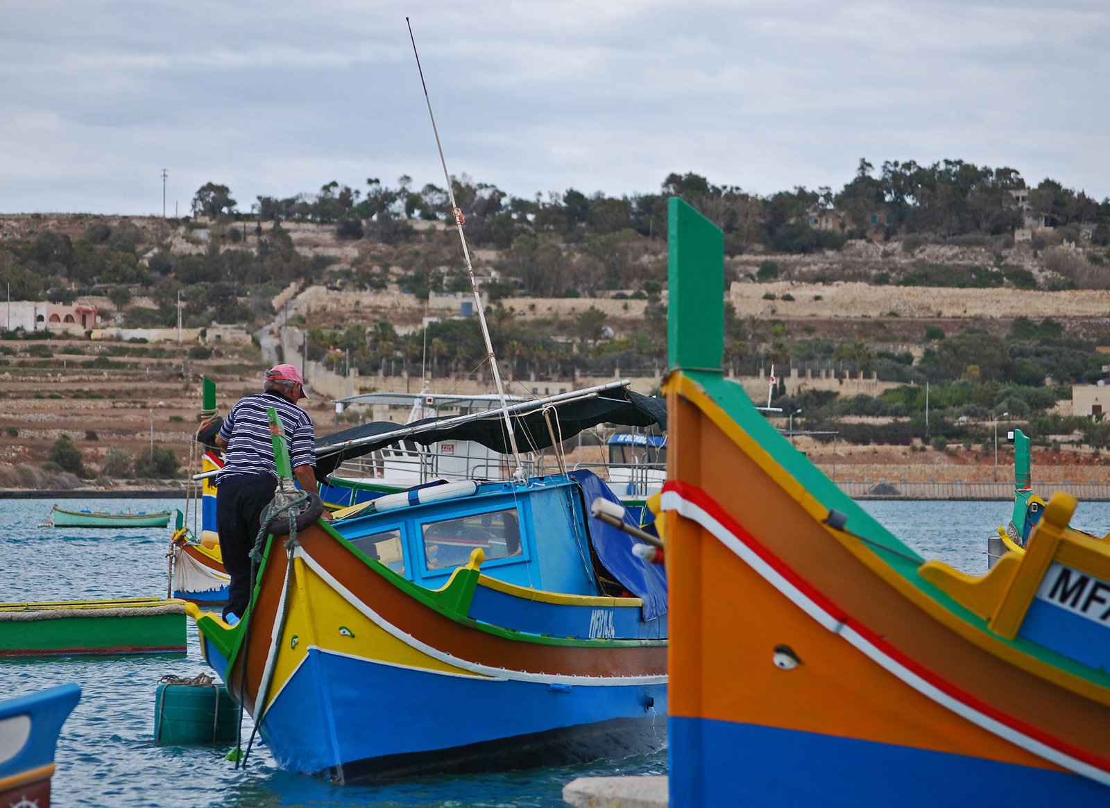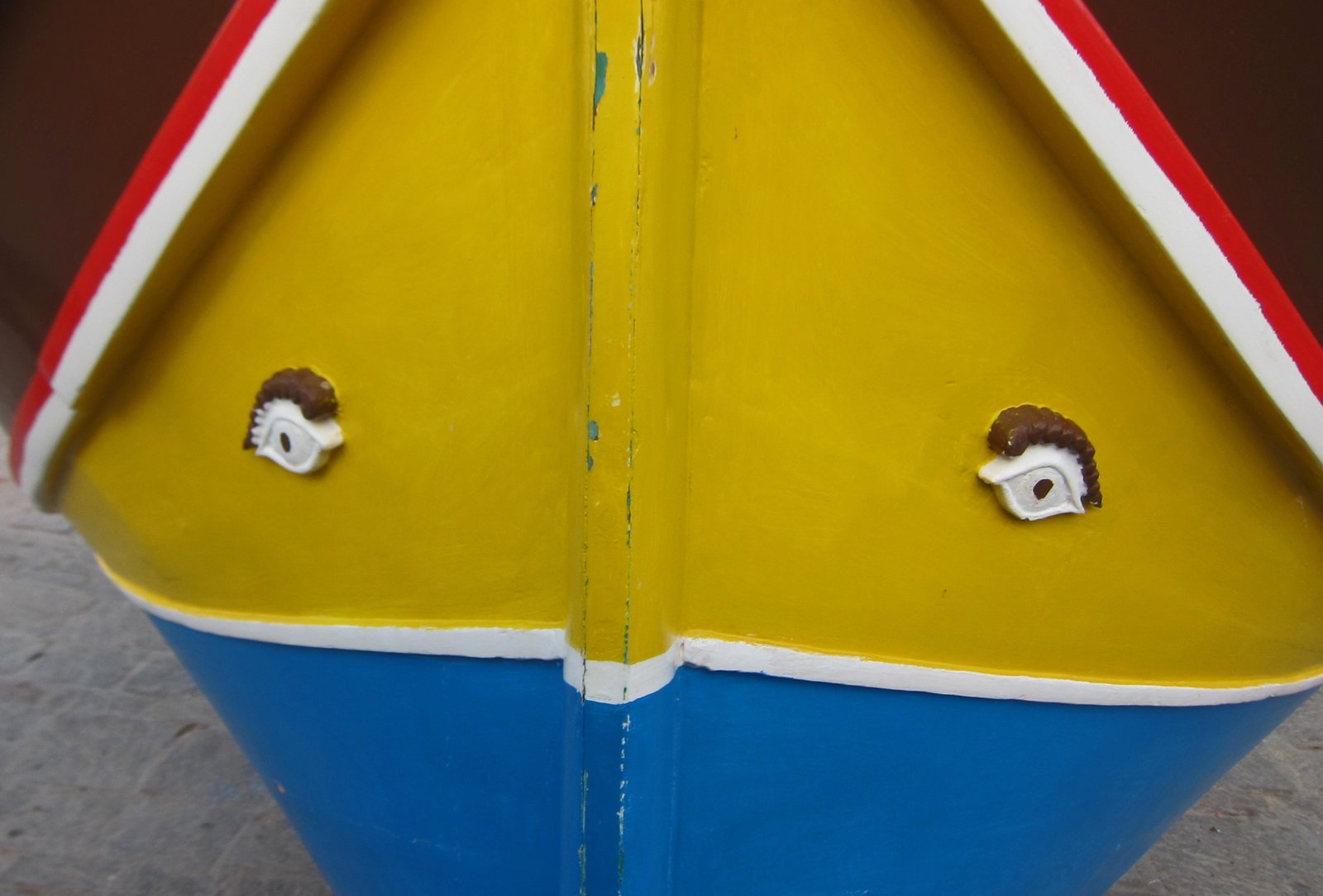Looking closely, you might notice something quite interesting about the brightly colored "Luzzi", the traditional Maltese Fishing Boats.