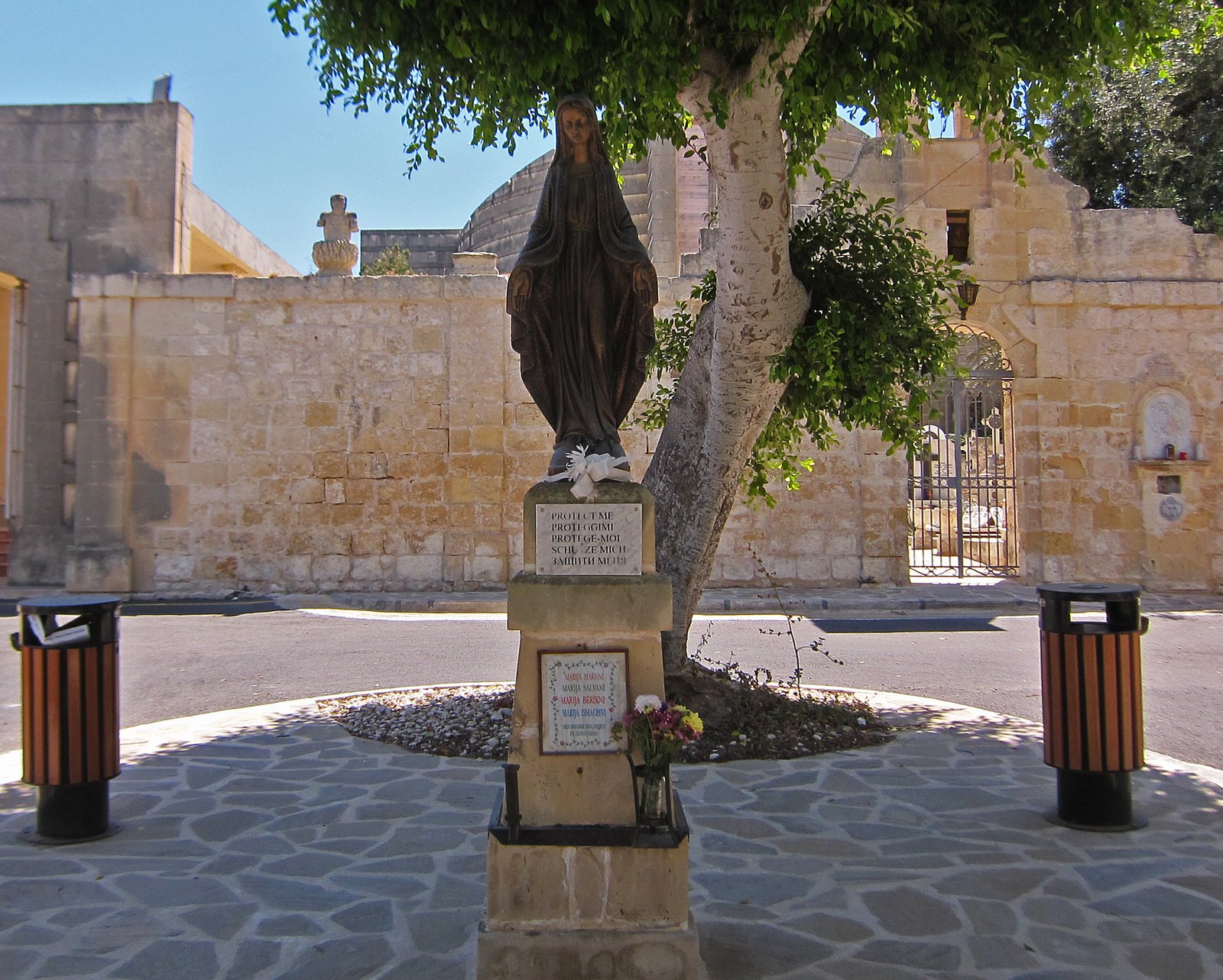 Leaving the site, I got the Missus who was just having a great old time listening to music, staring at the tree and the statue of the Virgin Mary.