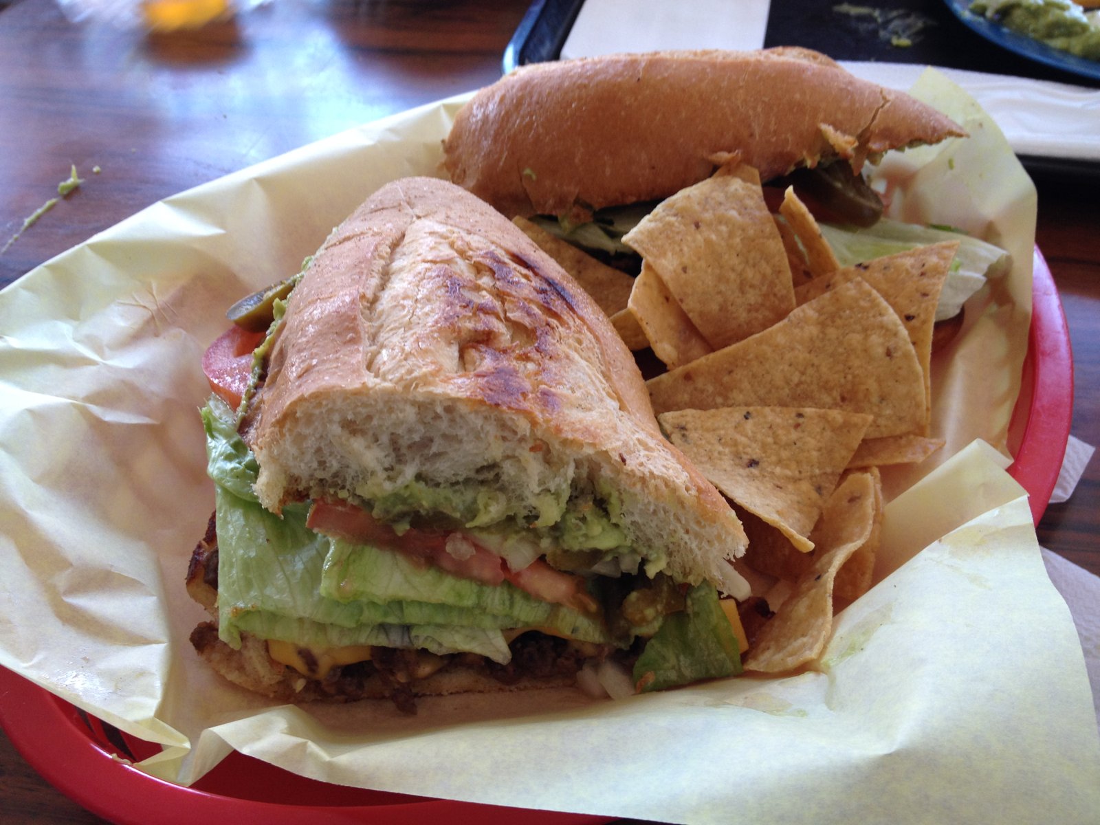 Tortas here are made with a great bread which is brought up from Mexico. Above, the Lomo ($6.50) is my usual choice. Lettuce, tomato, onions, cheese avocado and a thin layer of beans surround the beef (and sometimes, pork) tenderloin, which is cured then chopped and heated for this sandwich.