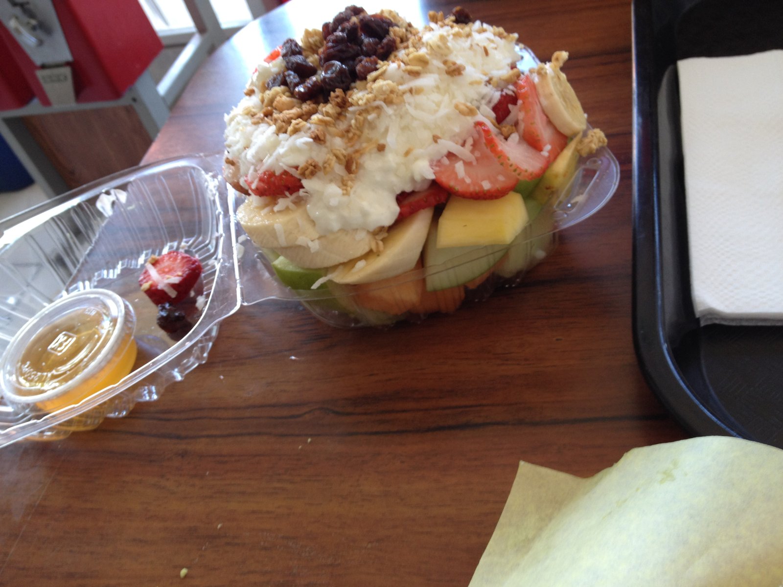 Almost every visit, I've ordered a small fruit salad ($6.65) with everything (cottage cheese, raisins, granola, coconut and honey)…and have needed to take hime leftovers.