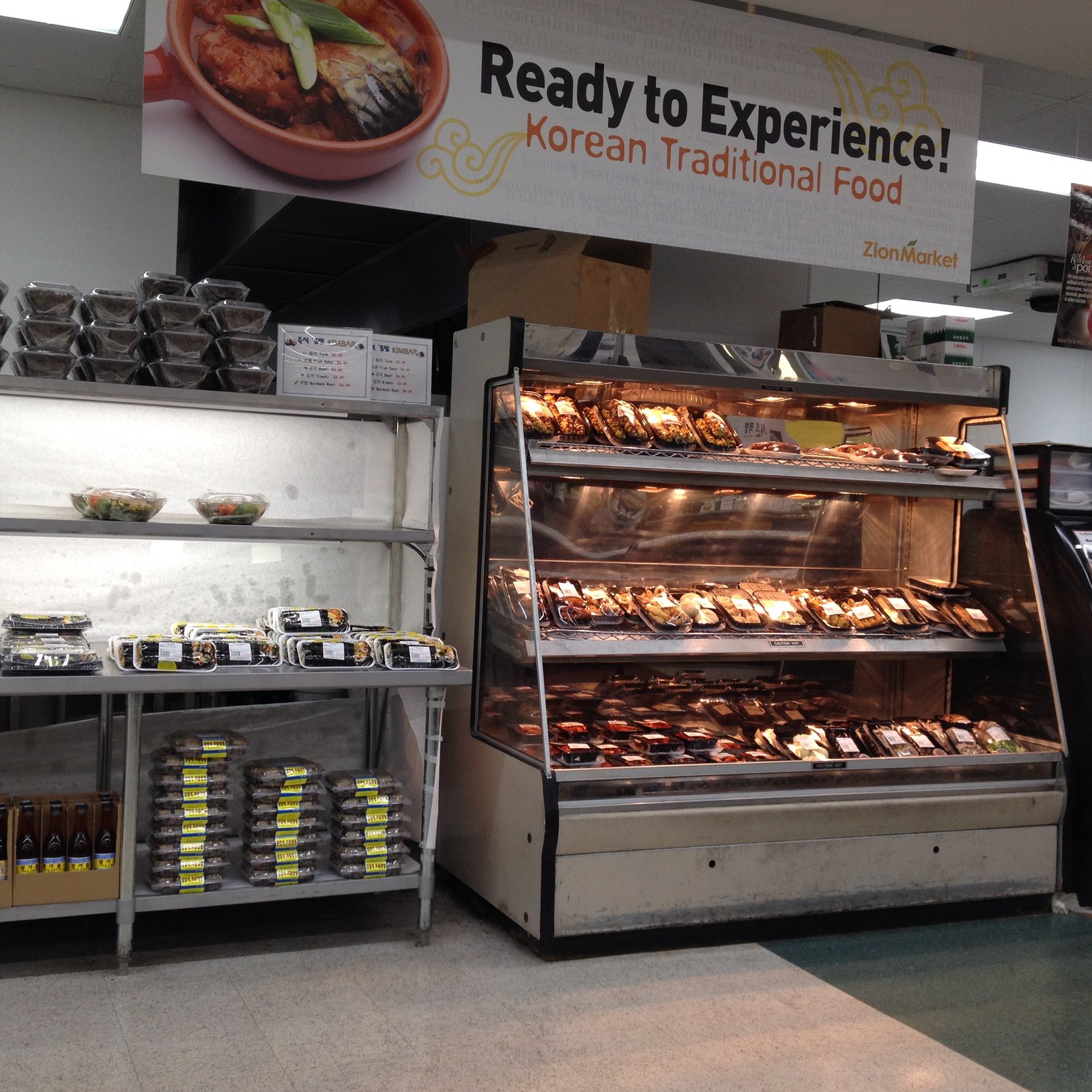 The hot and room temperature counters had just been filled with freshly prepared items.