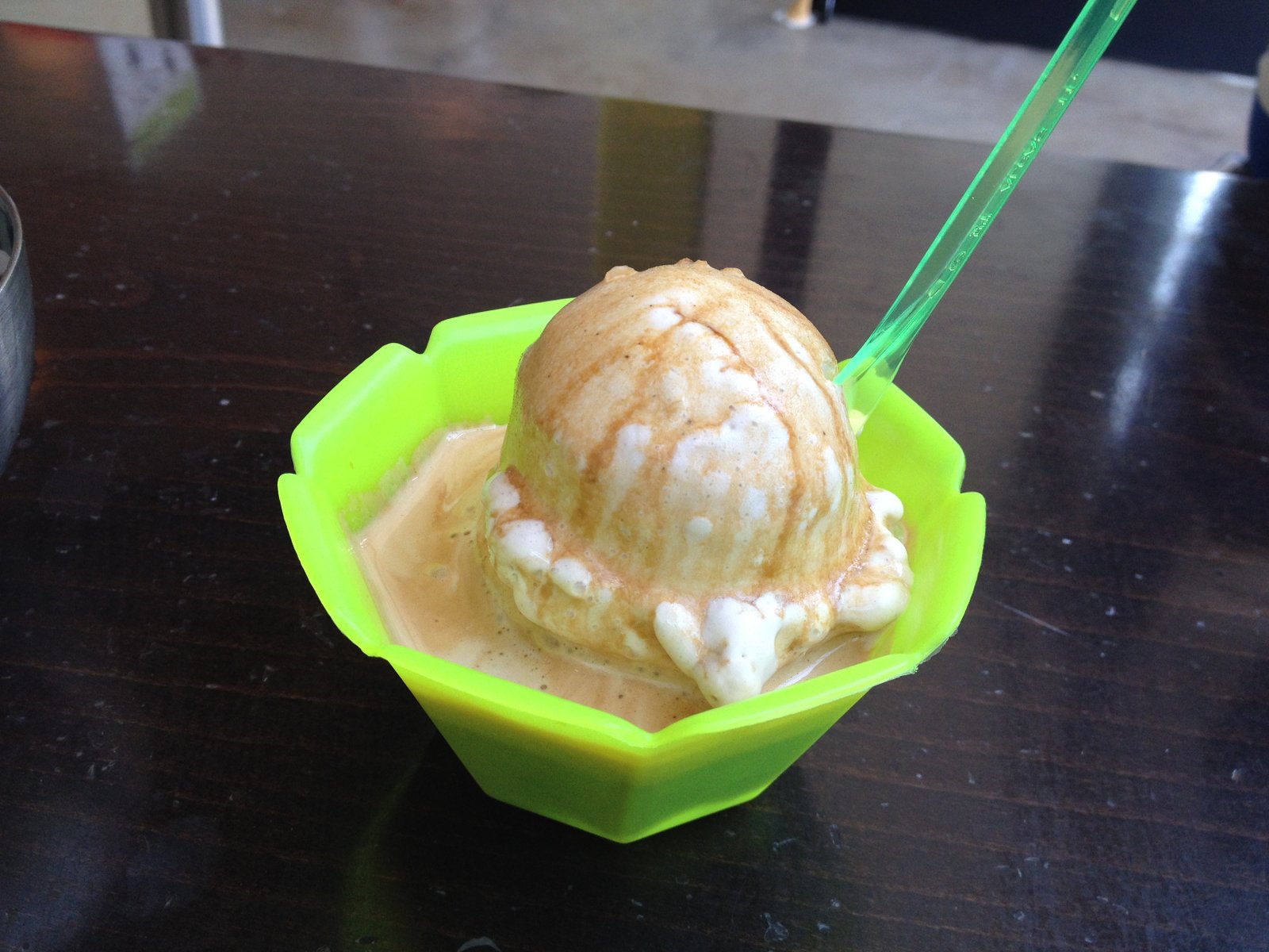 Also, an affogato (small size gelato ($3.80) with a shot of espresso over it (+$1)) can have two flavors within…in this case, panna cotta (vanilla flavored sweet cream; it's different than (the excellent) vanilla) and hazelnut went perfectly with the brisk shot of concentrated coffee.