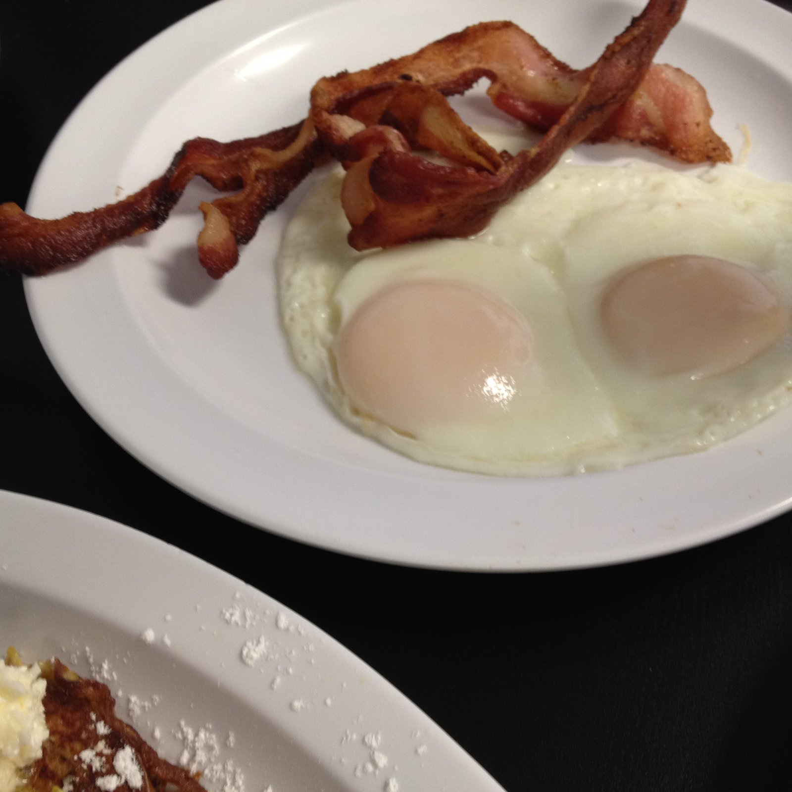 Adding two eggs and a sausage patty ($2.95) balanced out the French toast, making it a meal. The sausage is mild in flavor, the eggs are always perfectly made.