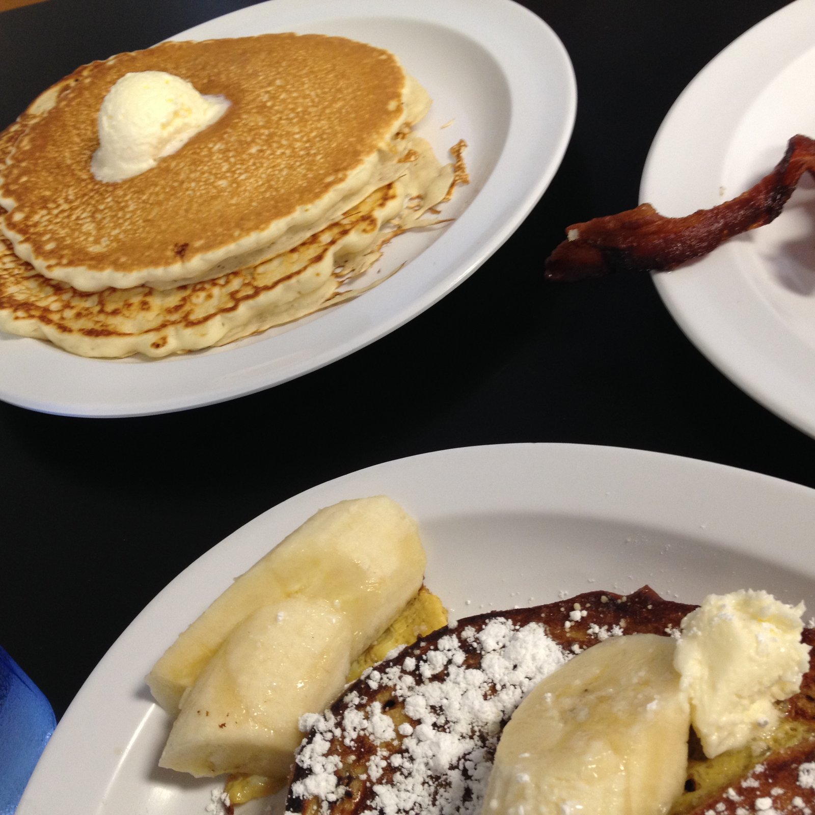 The Mister opted for the $5.95 weekday special with 2 bacon, 2 eggs and 2 pancakes. Again, very nicely made and just right. Coffee is $1.75 and constantly refilled.