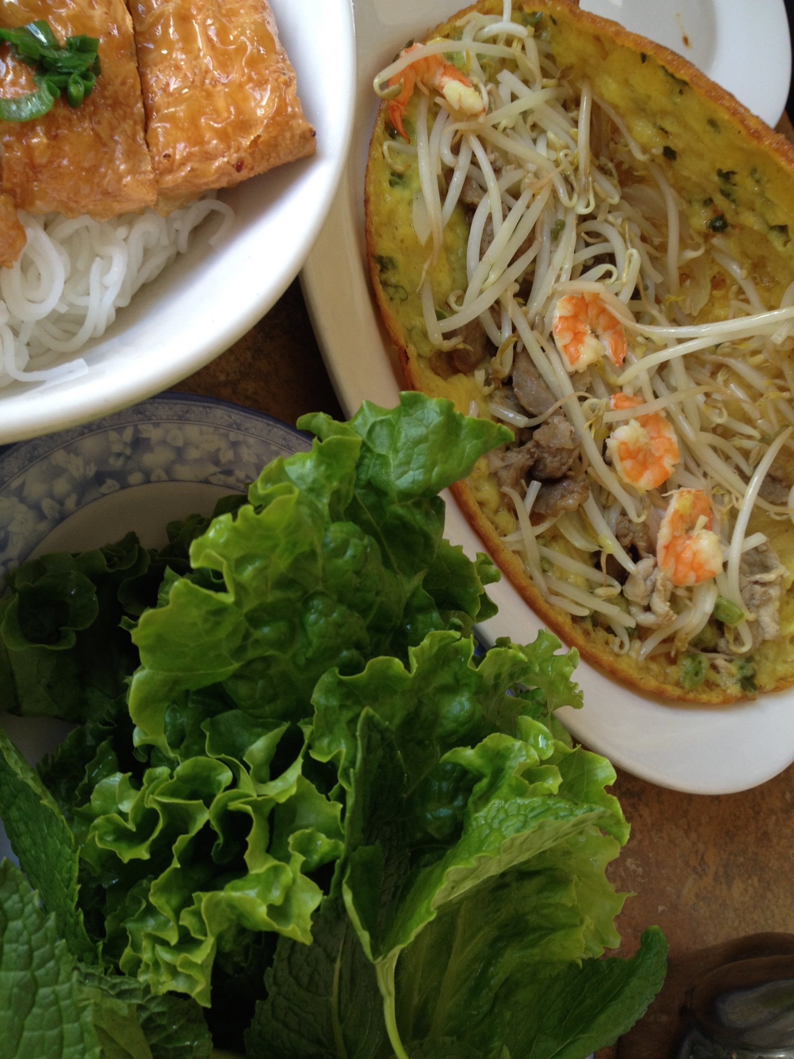 Then again, my most favorite version of Banh Xeo ($6.50) is at Van Hoa, so as we are being seated I place that order (it takes a while to make the rice flour/turmeric pancake) The crunchy light pancake is delightful, the shrimp and pork are plentiful along with the onion/bean sprout/mung bean filling. Eating bits of this wrapped in lettuce and mint is also refreshing.