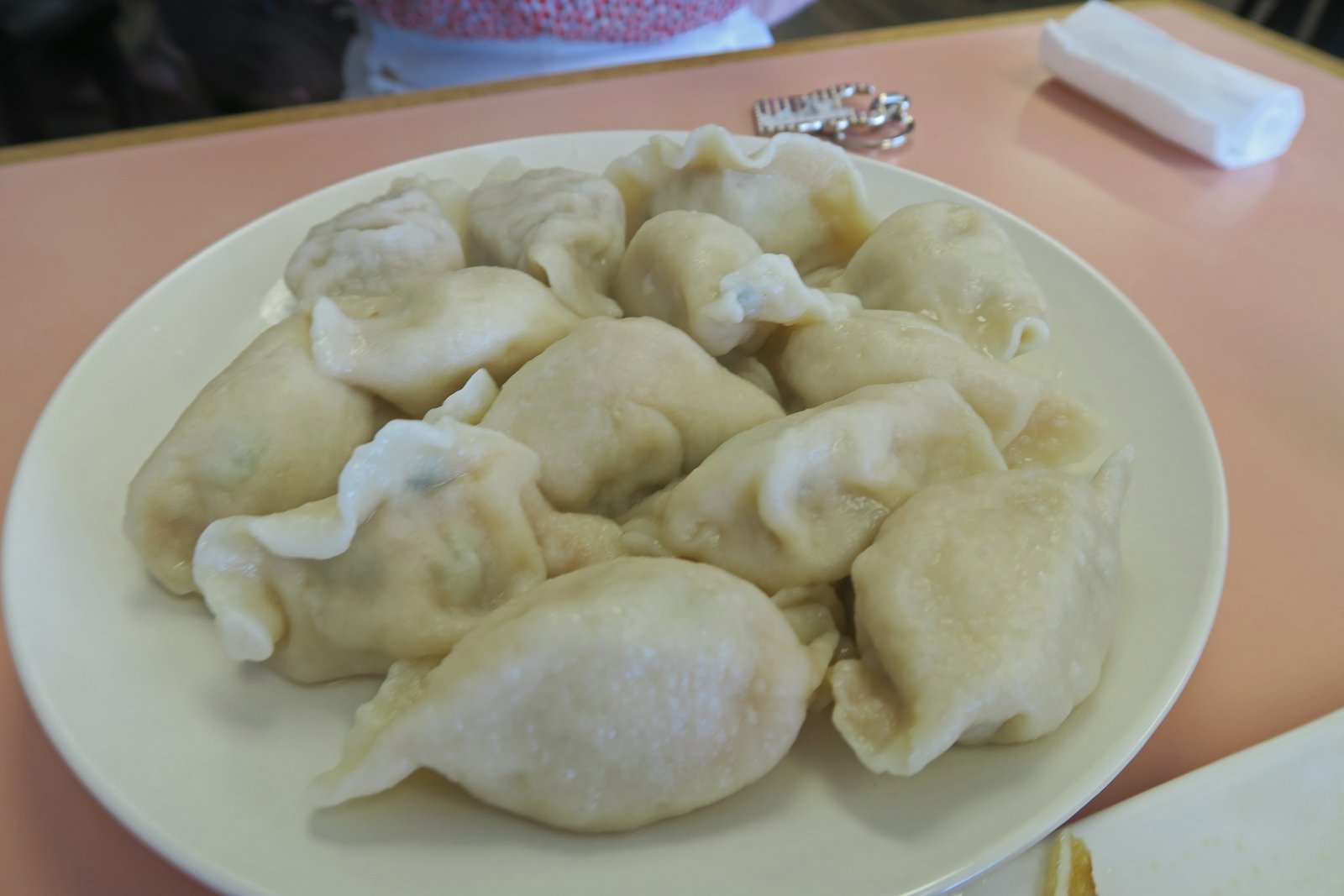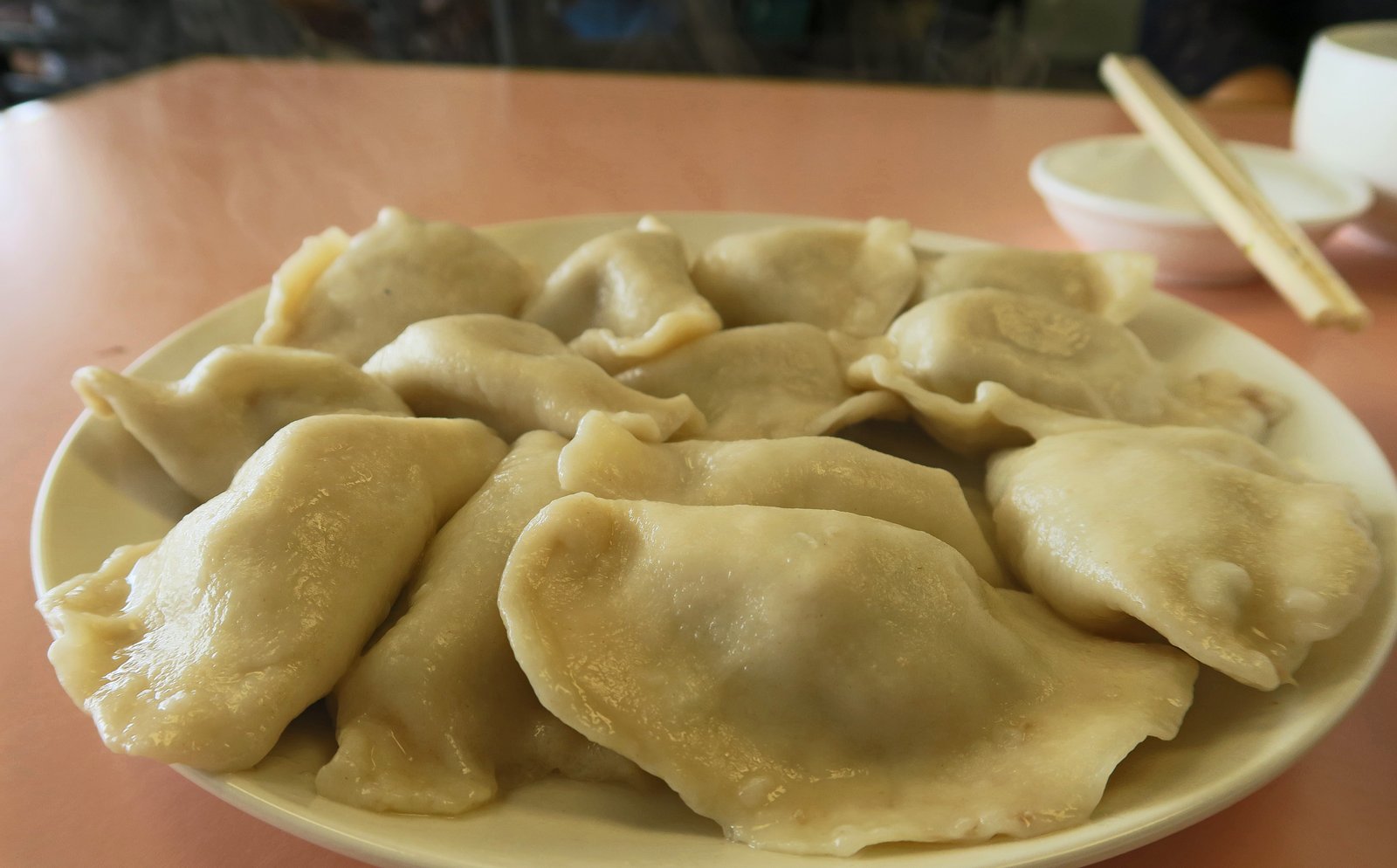 Though like my first visit, though not as water logged, it wasn't drained well. This time I took a photo. Boiled dumplings, or specifically shuǐjiǎo…literally "water dumplings" really depend on basic steps being carried out and simple flavoring and texture carry the day…….of ocurse I do like the Qingdao Black vinegar with pounded garlic.