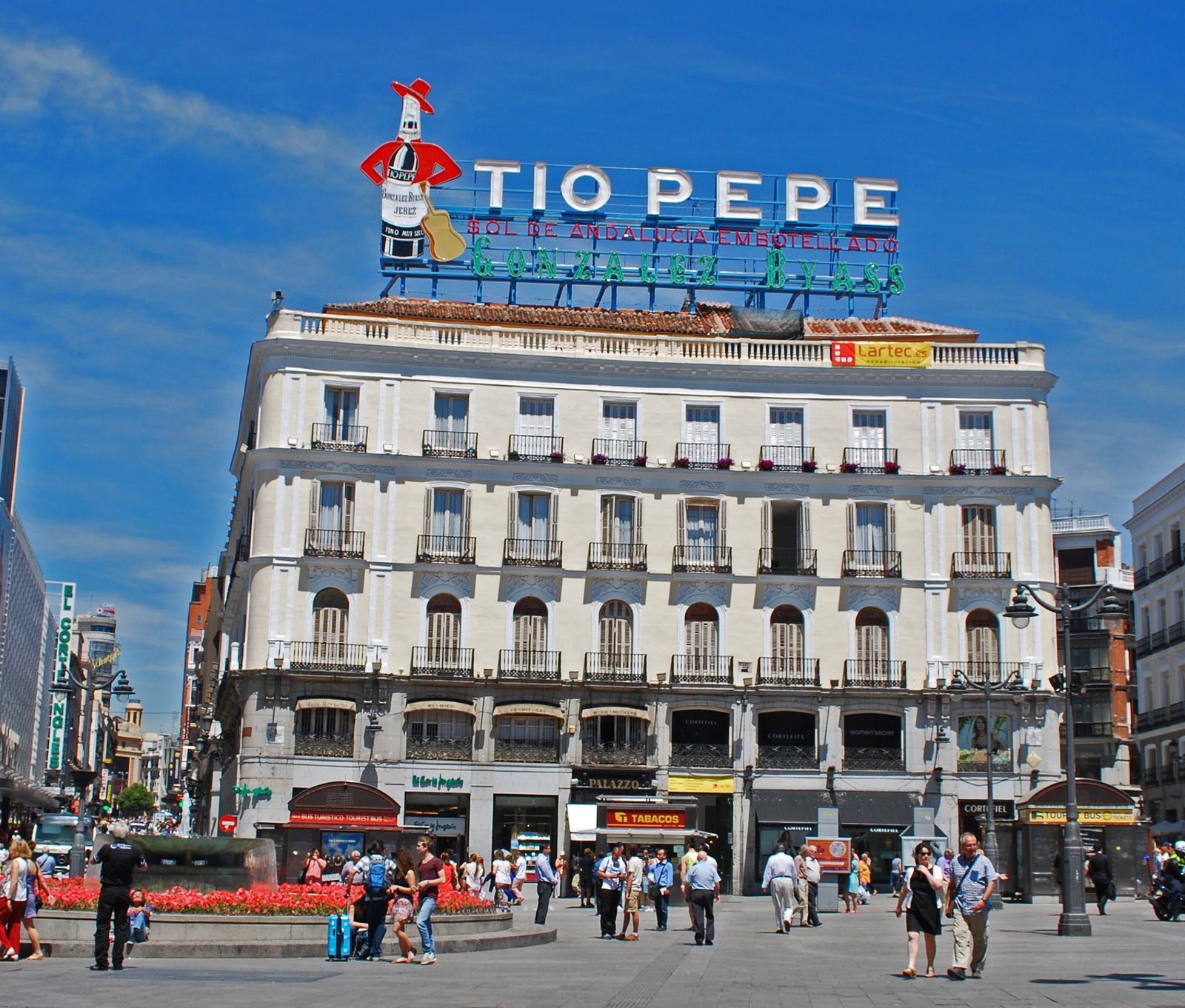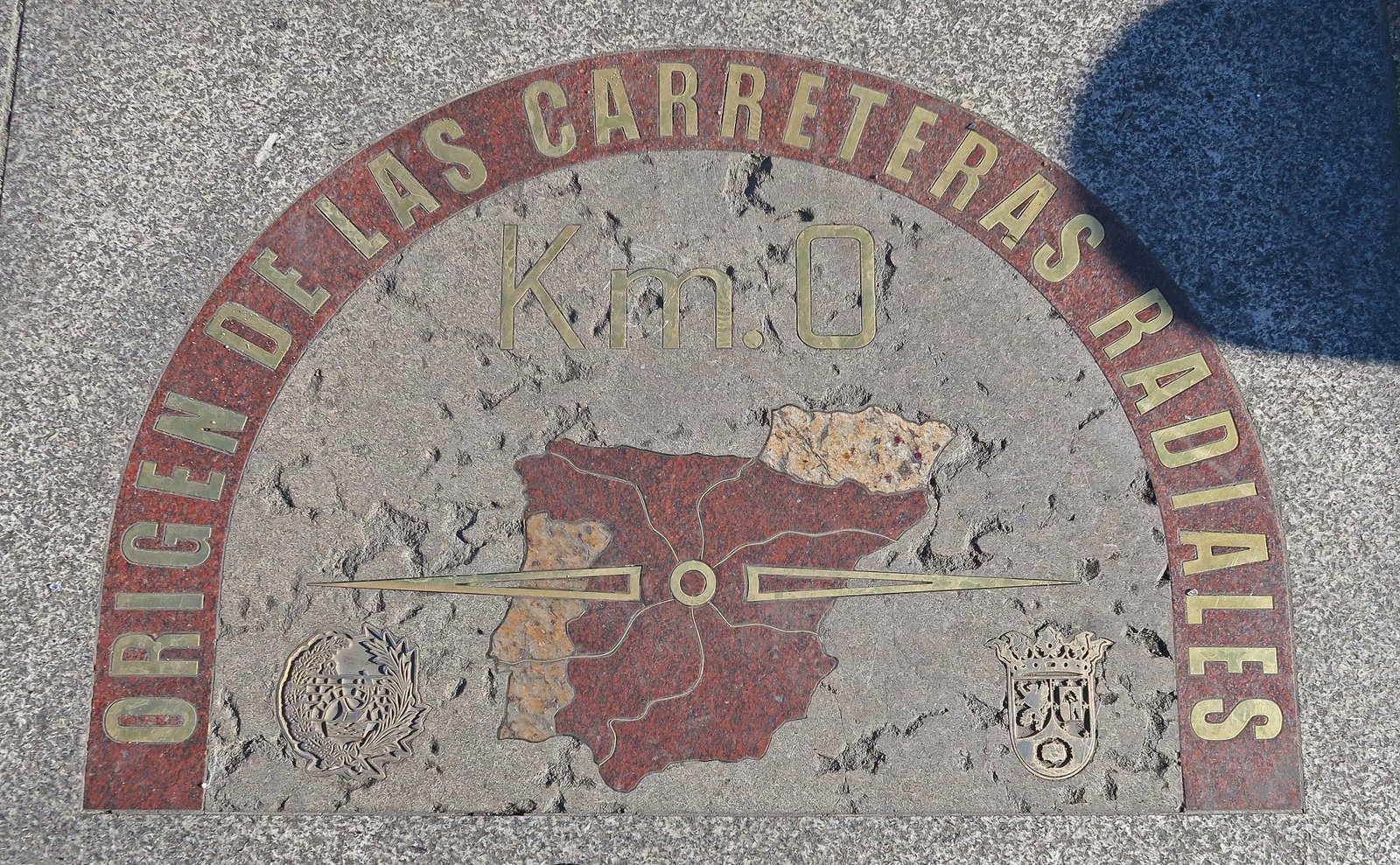 Strangely, I don't have a day time photo of the building which faces the Tio Pepe sign and the statue of Charles III. It was the first Post Office in Madrid and is currently the Governor's Office. Right in front of the building's main doorway is this marker on the ground.