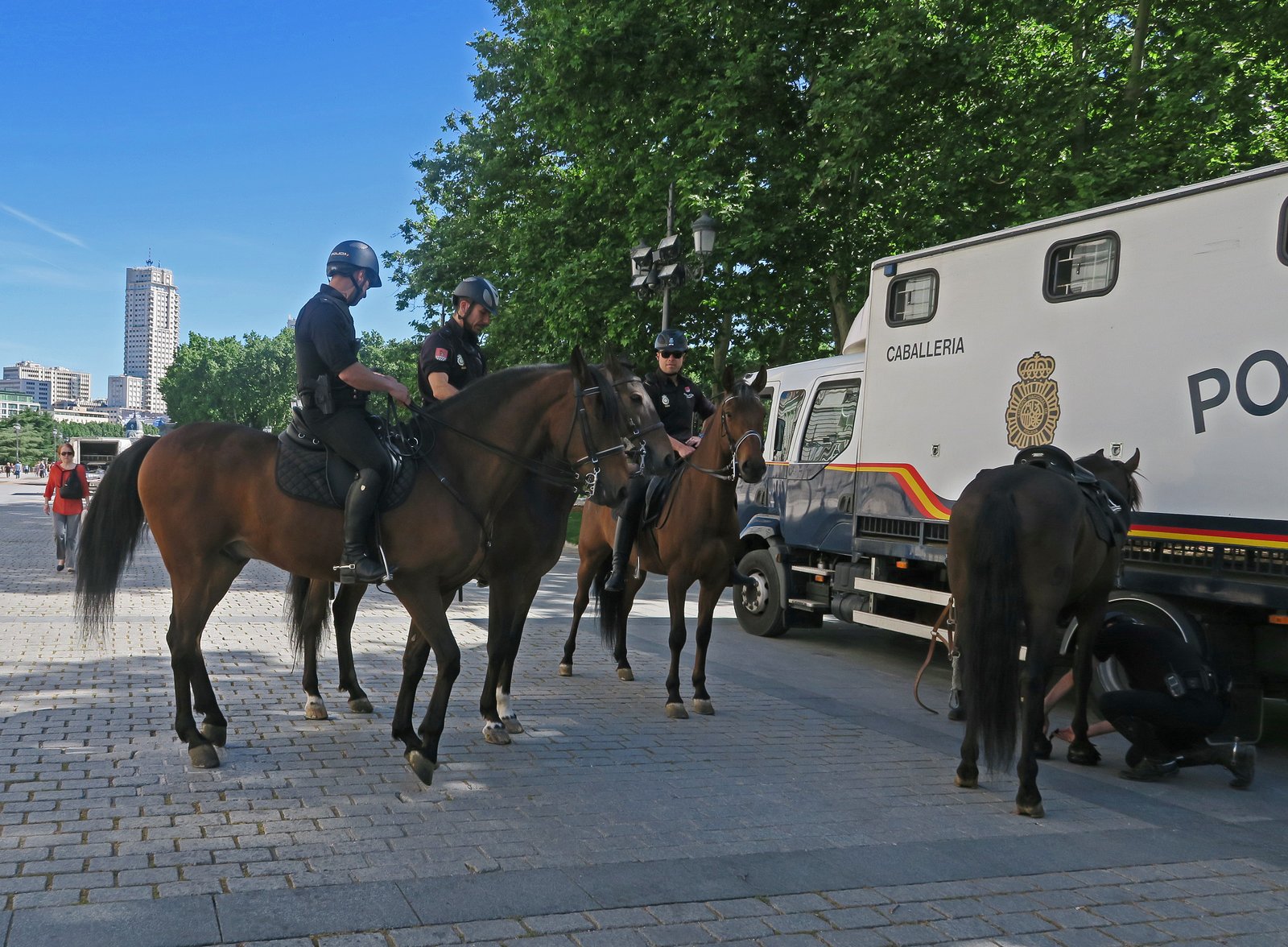 We had thoughts of visiting, but the Missus was on a tight schedule here, so maybe next time. East of the Royal Palace is Plaza de Oriente. We saw Mounted Police getting ready for their shift when we arrived.