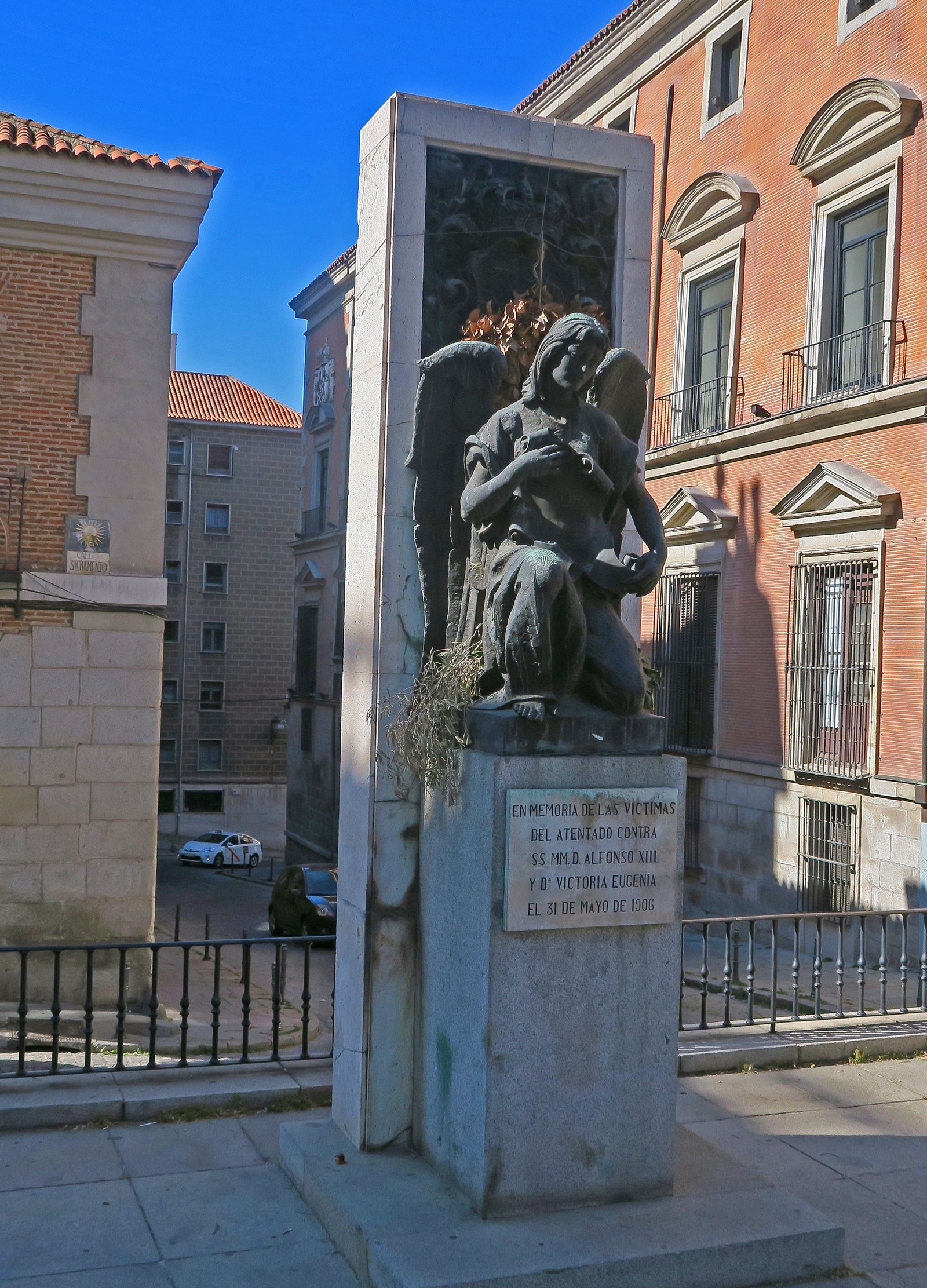 06072015 062We weaved through streets, past buildings until we came to this memorial. This statue marks the spot of an assassination attempt on newlyweds King Alfonso and Princess Victoria by Mateu Morral. The statue memorializes the 15 people killed in the assassination attempt. No the King and Queen were not killed.