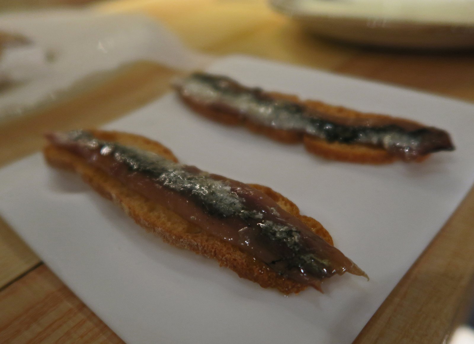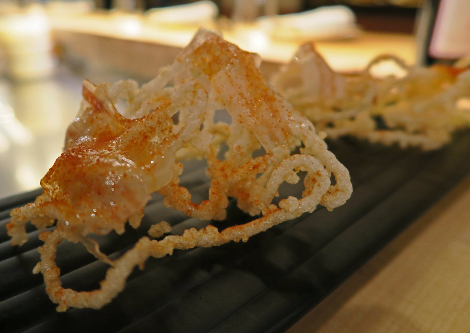 Crisp strand of what was like chicharron with a sticky, thin, slice of jamon on it.