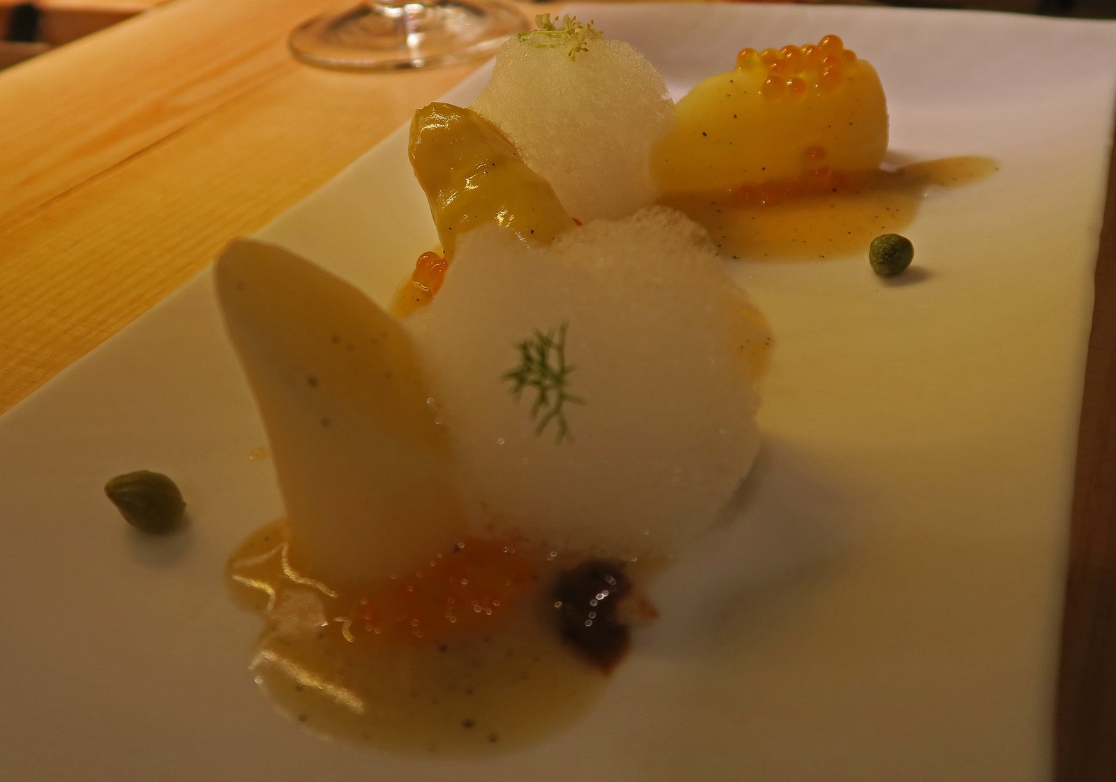 The trout eggs added the zing to a rather mild dish. For some reason we didn't enjoy the flavor of white asparagus with fennel.