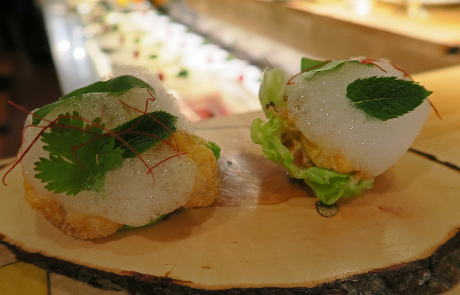 Next up, an amazing dish; Crispy Egg Yolk with Mushroom Gelatin.