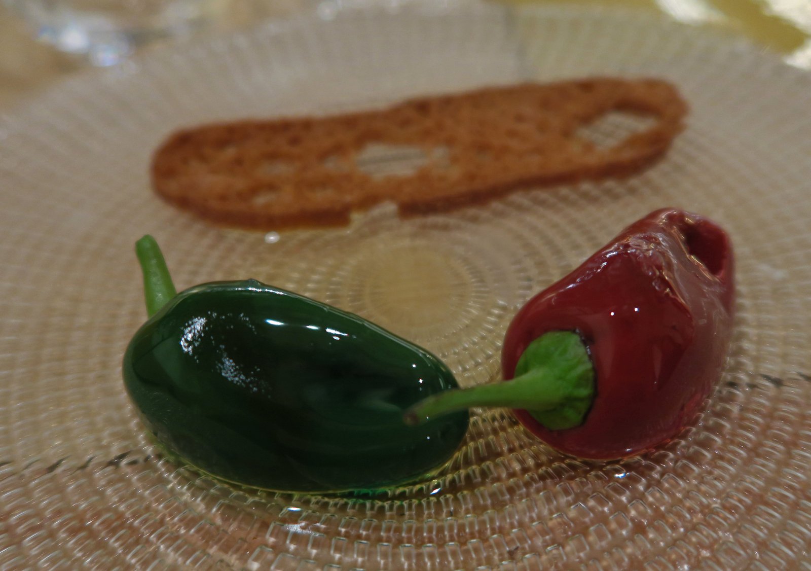 We saw one of the Chefs placing what looked like chili peppers on a plate. We had no idea what it was. It turned out to be my favorite dessert item; Chocolate Peppers, olive oil, and salt. Man, what a combination! The sea salt really brought everything together. Like I said, I'm not a dessert guy, but this was really, really good. This was the perfect whimsical, fun, but delicious dessert.