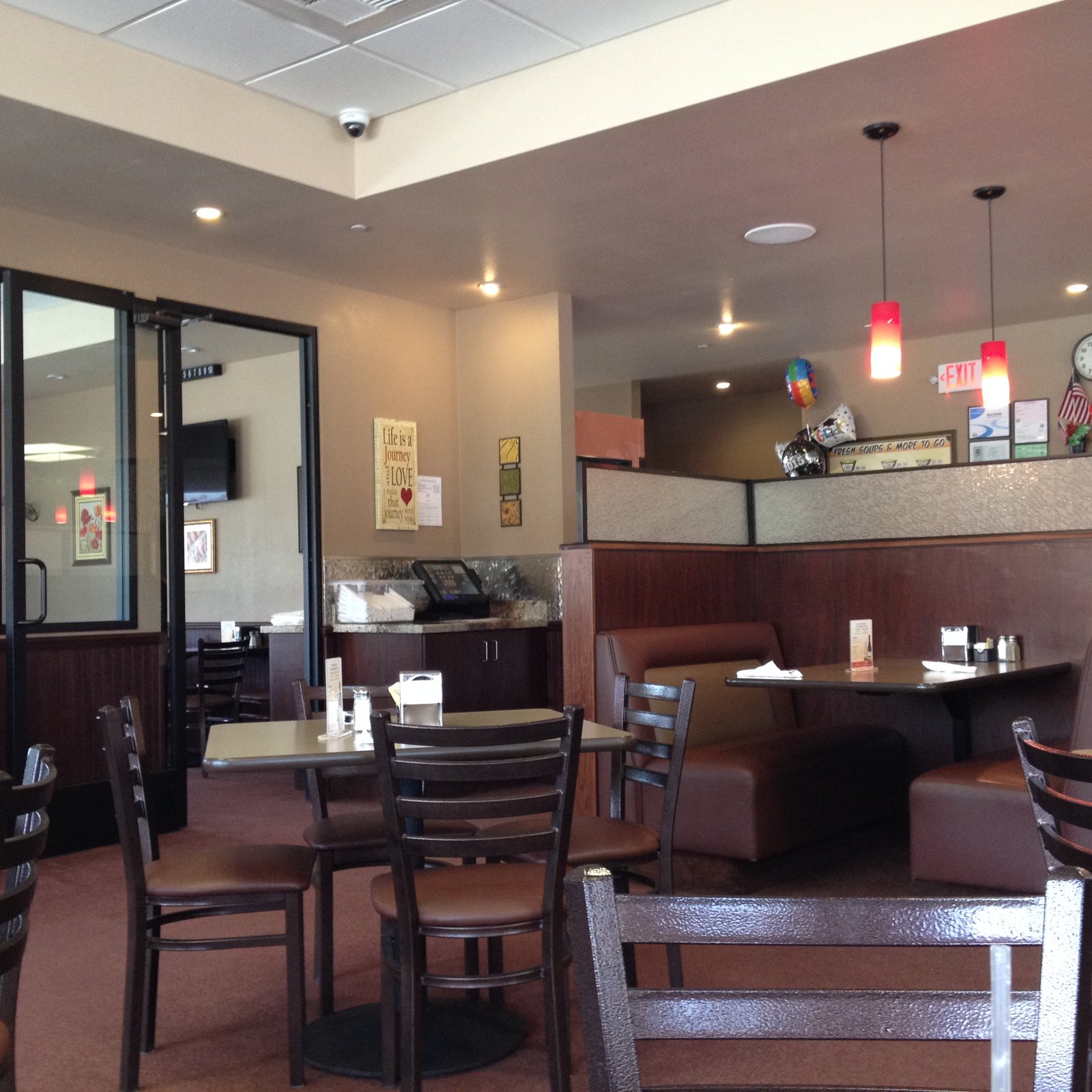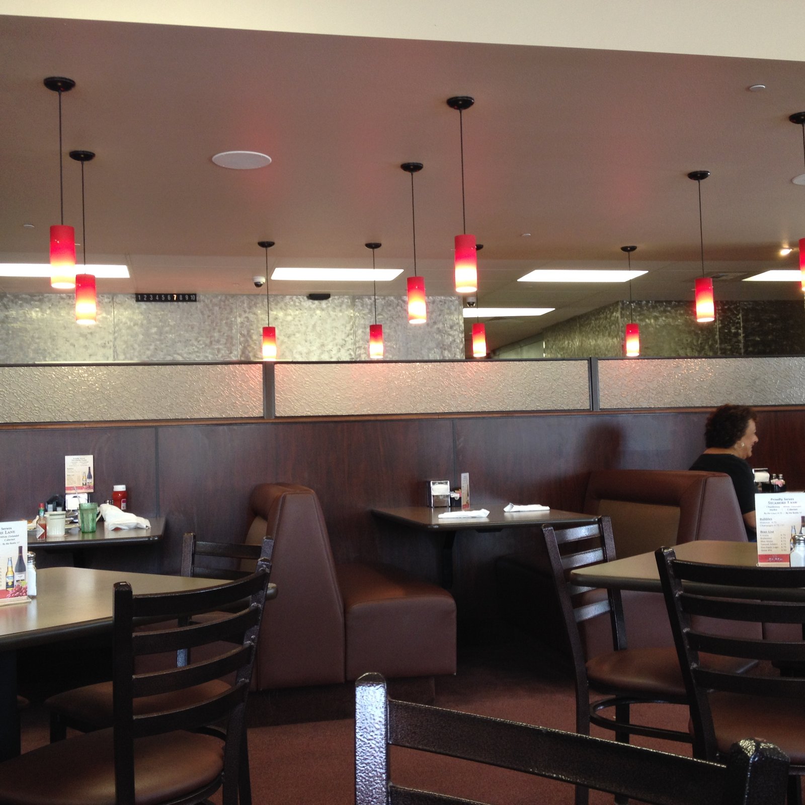 The interior decor is newer, neat and clean, there is a separate closed room for meetings and wonderful friendly waitresses.