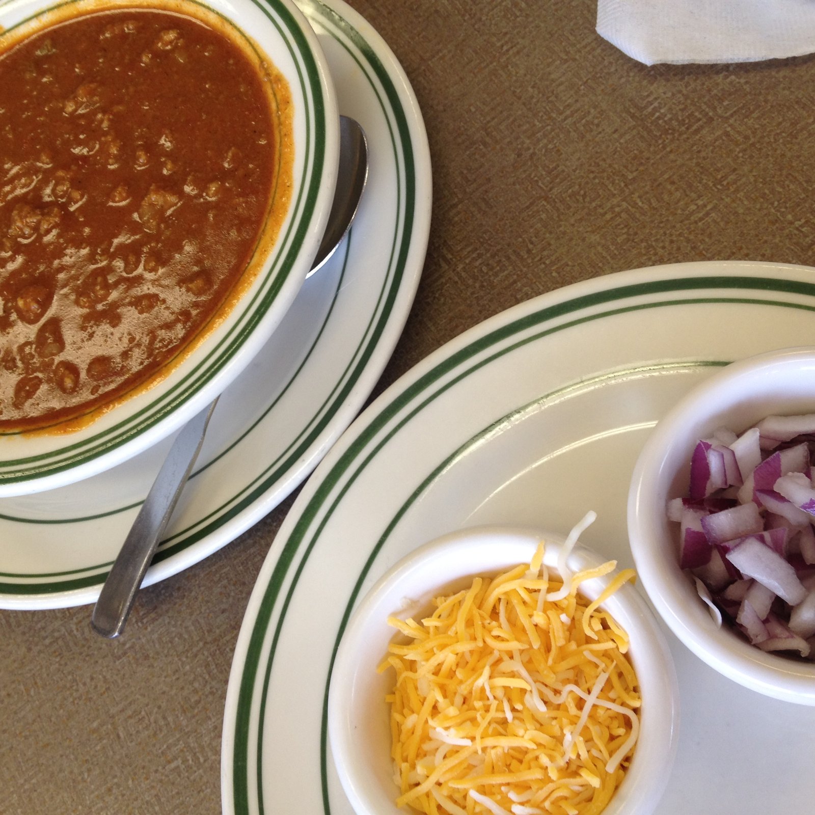THE chili bowl ($5.69). If you know, or care much about chili…this is great. No beans, tomato, peppers (just a hint of the typical mild/red bell pepper flavor and possibly Anaheim chilis), onion, spices of cumin and garlic with a bit of chili powder heat. This would be perfect on a cold day.