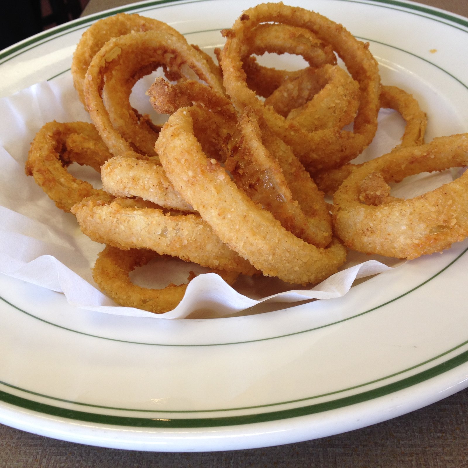 From the 'regular' menu, the appetizer of onion rings ($4.99). One size only. 20 fresh breaded and perfectly fried whole slices of onion. For the first time ever, The Mister and I did not fight over who got the last one; we were full from sharing this giant serving.