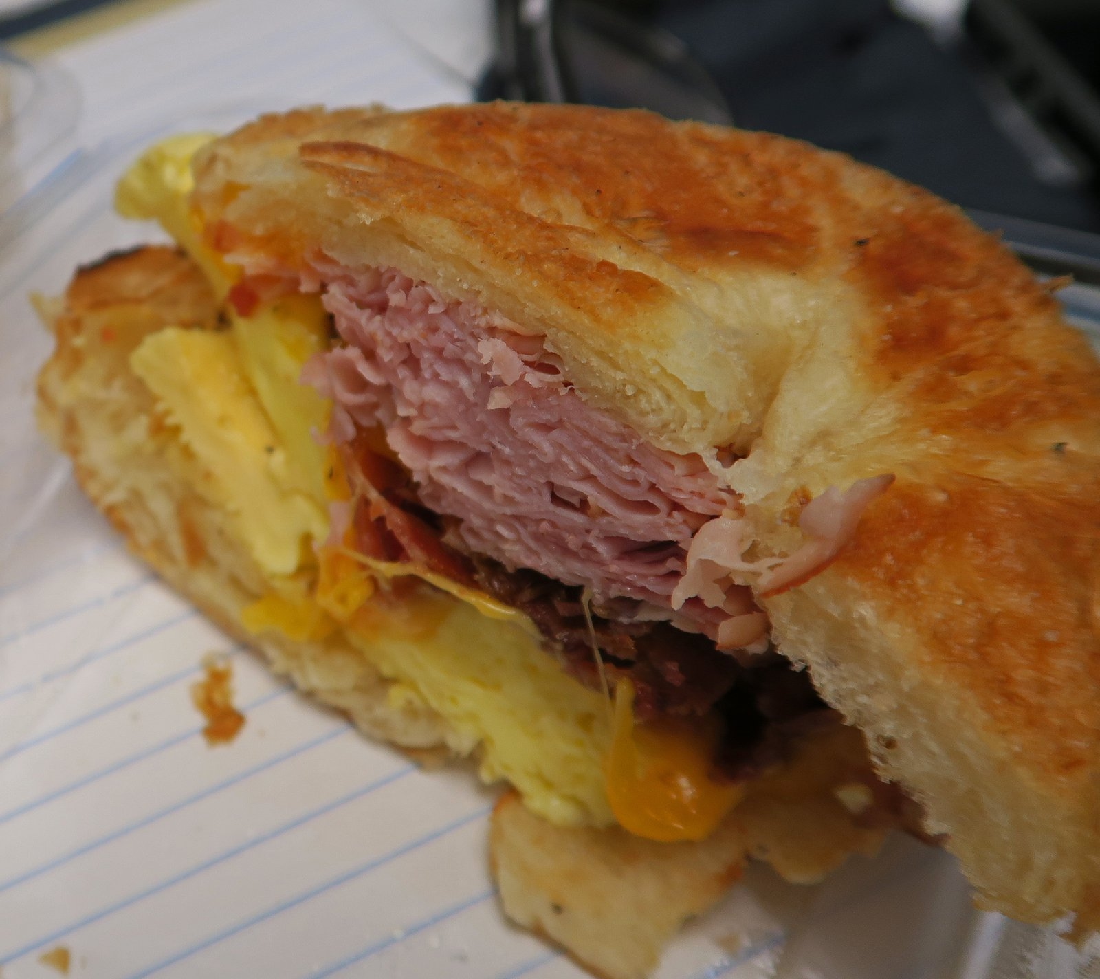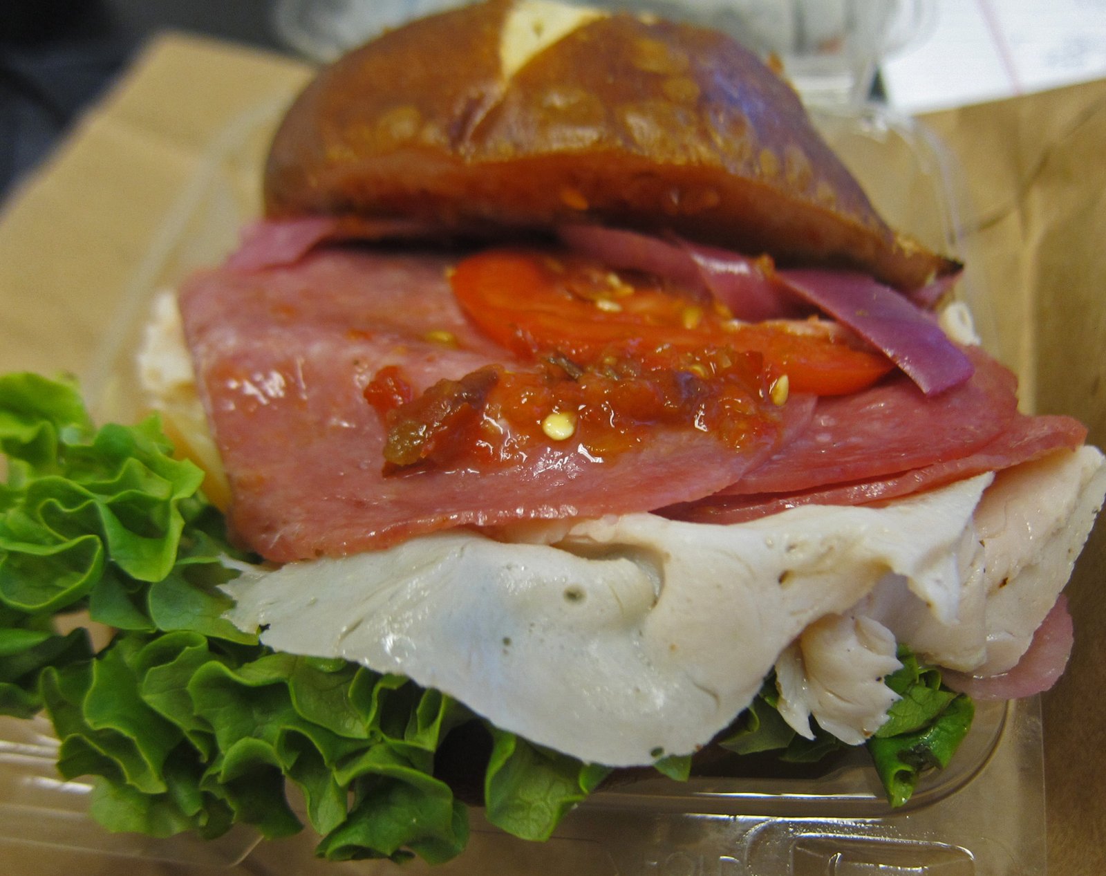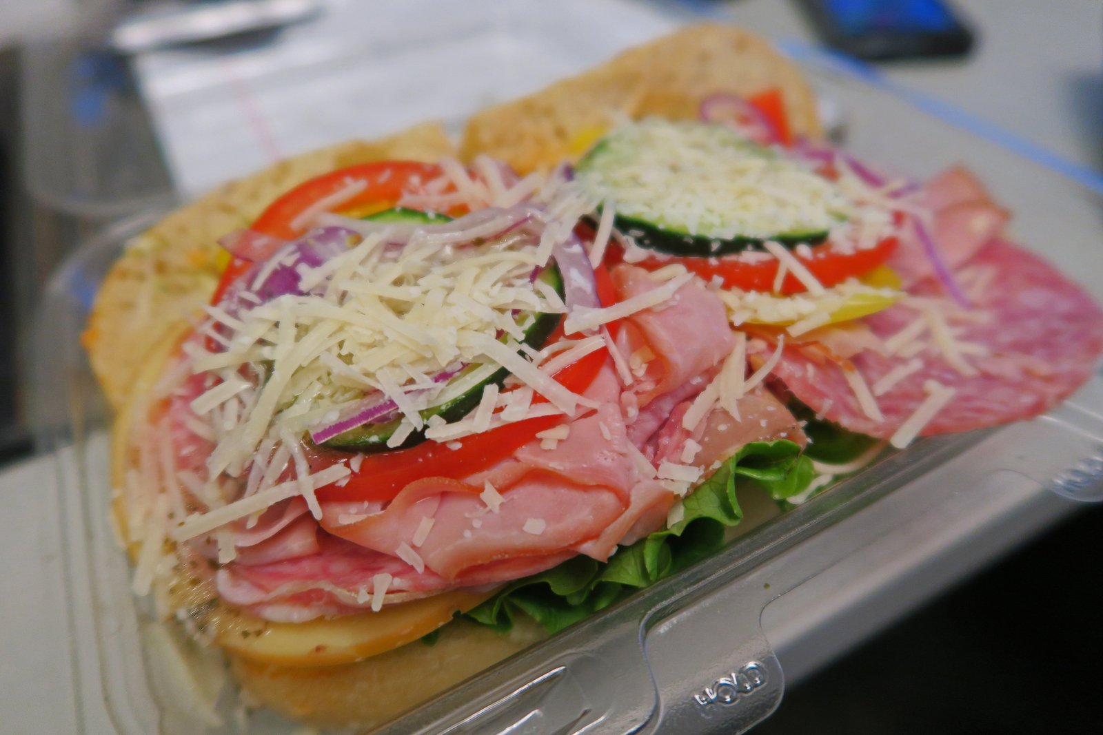 I decided on trying the "Comeback". The sandwich felt heavy in the sack and indeed it was quite large. This was on a French Roll which was sliced then items placed on the roll "open faced"…….I could not for the life of me fold it over and made a mess. I ended up tearing off the top half and placing it on the on top so I could eat it. Loved the red pepper and pepperoncini. There was a bit too much going on here and all the proteins just kind of cancelled each other out. But you won't get any complaints about value on this from me.