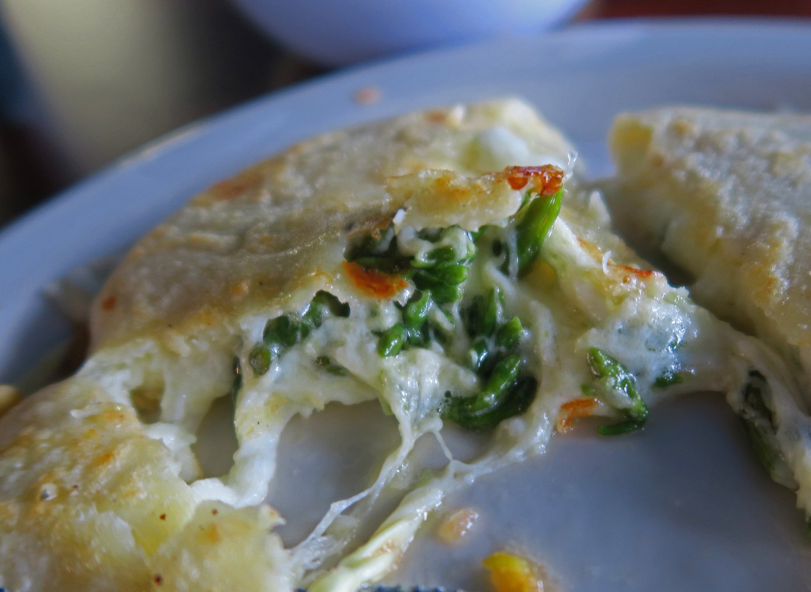 The queso en loroco, made up of the edible bud of the Fernaldia Pandurata and cheese was the best of the bunch. To me loroco has a pungent-artichoke flavor and the milkiness of the cheese really helped move it along without cancelling it out. It was the best of the bunch.