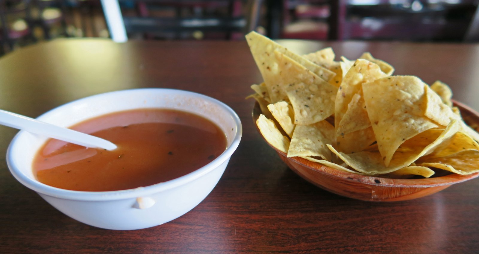 I placed my order and things started with the same basic mild and thin hot sauce and nondescript chips. Save that hot sauce; you might need them for the pupusas.