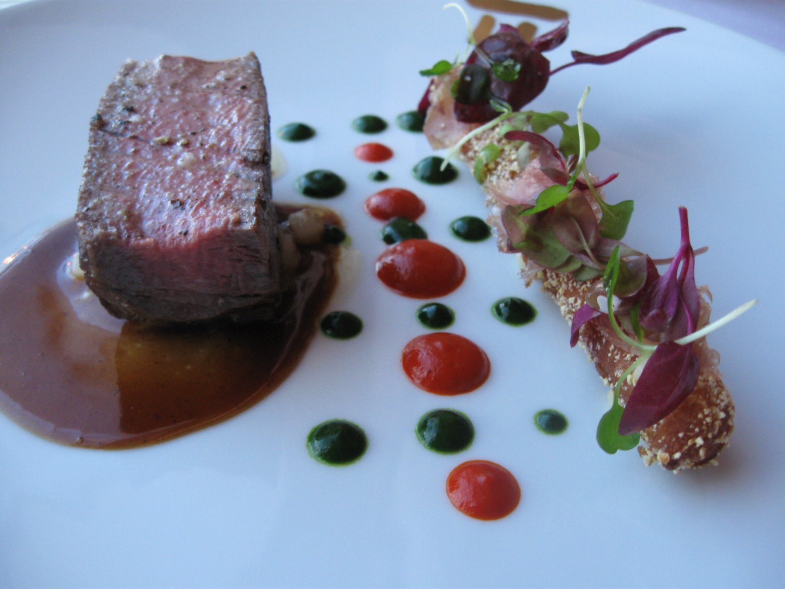 The thing that looks like a breadstick next to the beef is actually crusted dauphine potato topped with herbs. Like an edible pun.