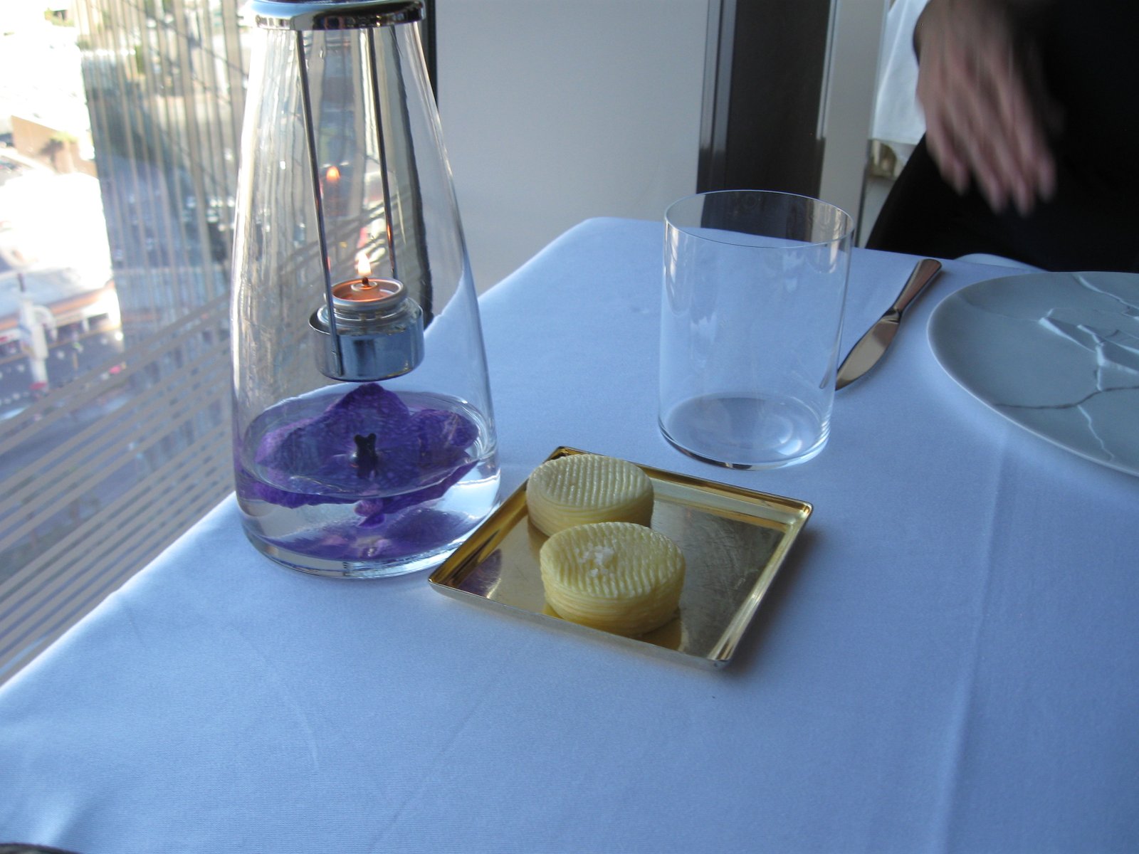 When I made the reservations, I had no idea that the Mandarin Oriental hotel containing the restaurant is allegedly one of only six five-star American hotels, and the only one in Vegas. From the moment of our arrival, when a valet parked our car and another guided us to the elevator, we were astounded by the level of service.