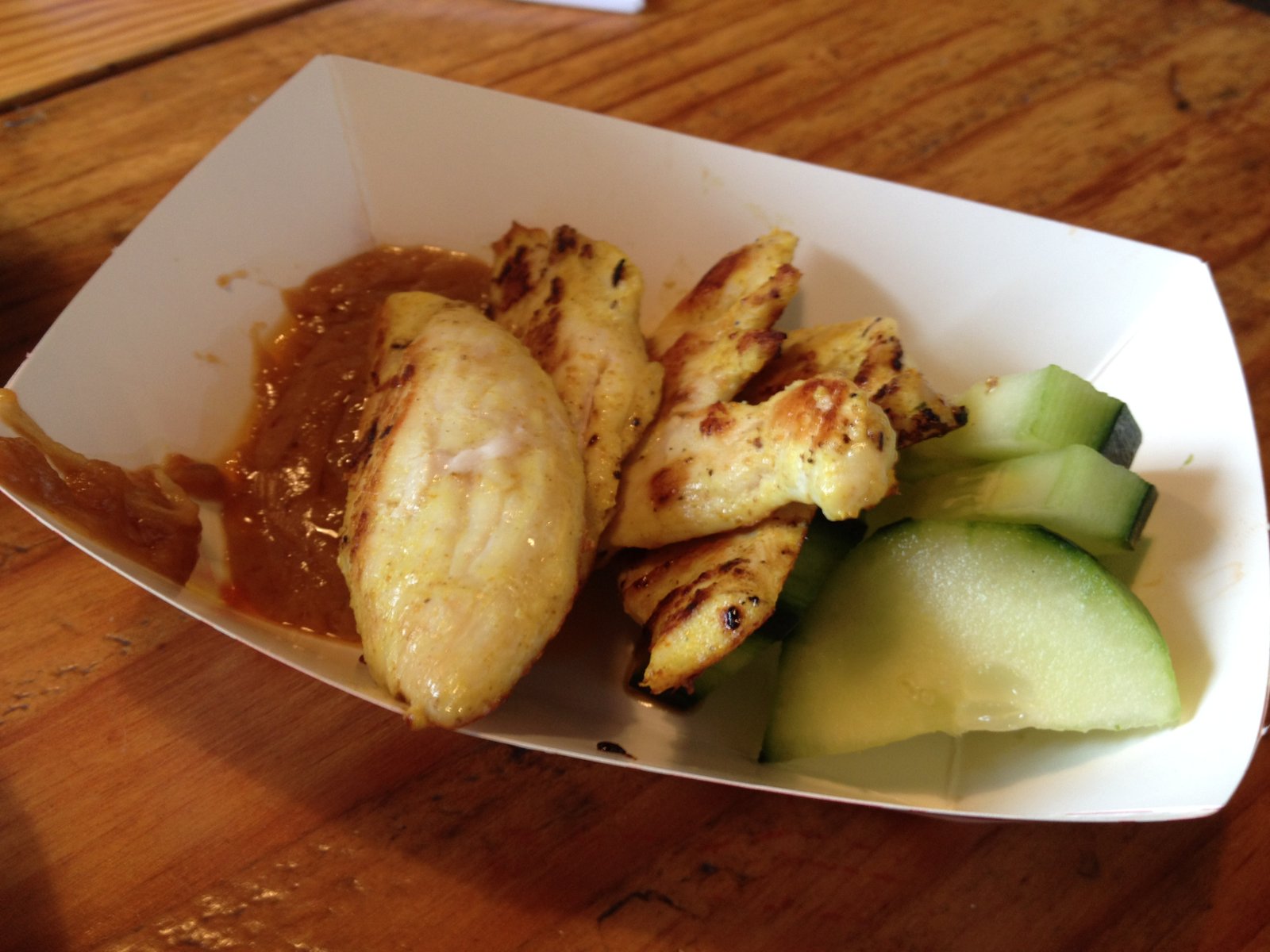 The Chicken Satay appetizer ($3) is served without the skewers (yay)…grilled chicken thigh pieces (flavorful) and some cucumber along with a nice (and not too sweet) peanut dip. This could be a light meal.