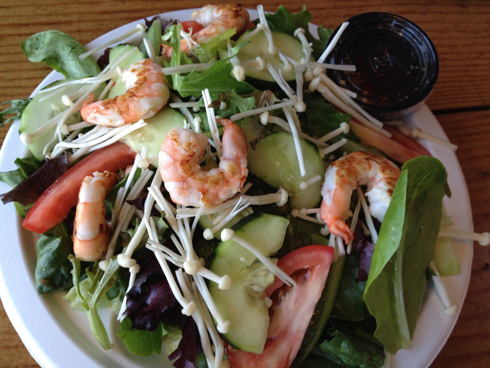 The Shrimp salad ($7) included 5 quite large freshly grilled shrimp, again with the variable of the dressing.
