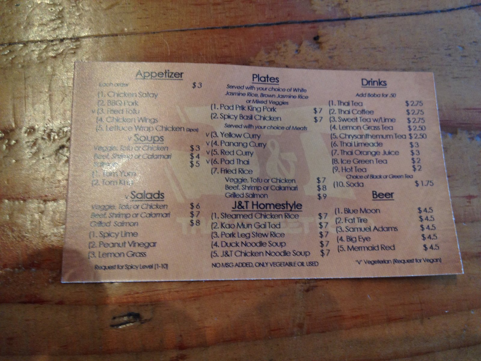 J&T Thai Street Food 5259 Linda Vista Road San Diego 92110 (619) 294-7500 Website Open Tues-Sat 11-midnight, Sun noon-9 and Monday 11-10