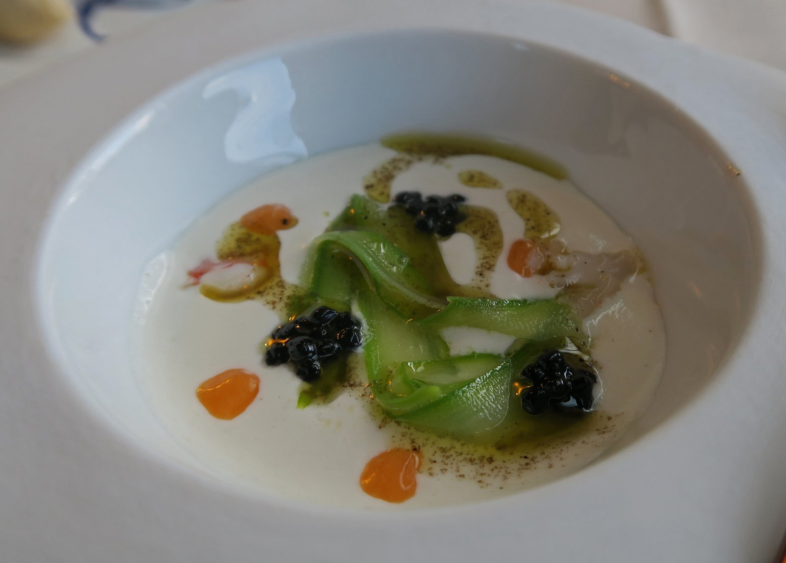 Ajo Blanco is a traditional cold almond and garlic soup….this version had the amazing flavor of truffles as well.
