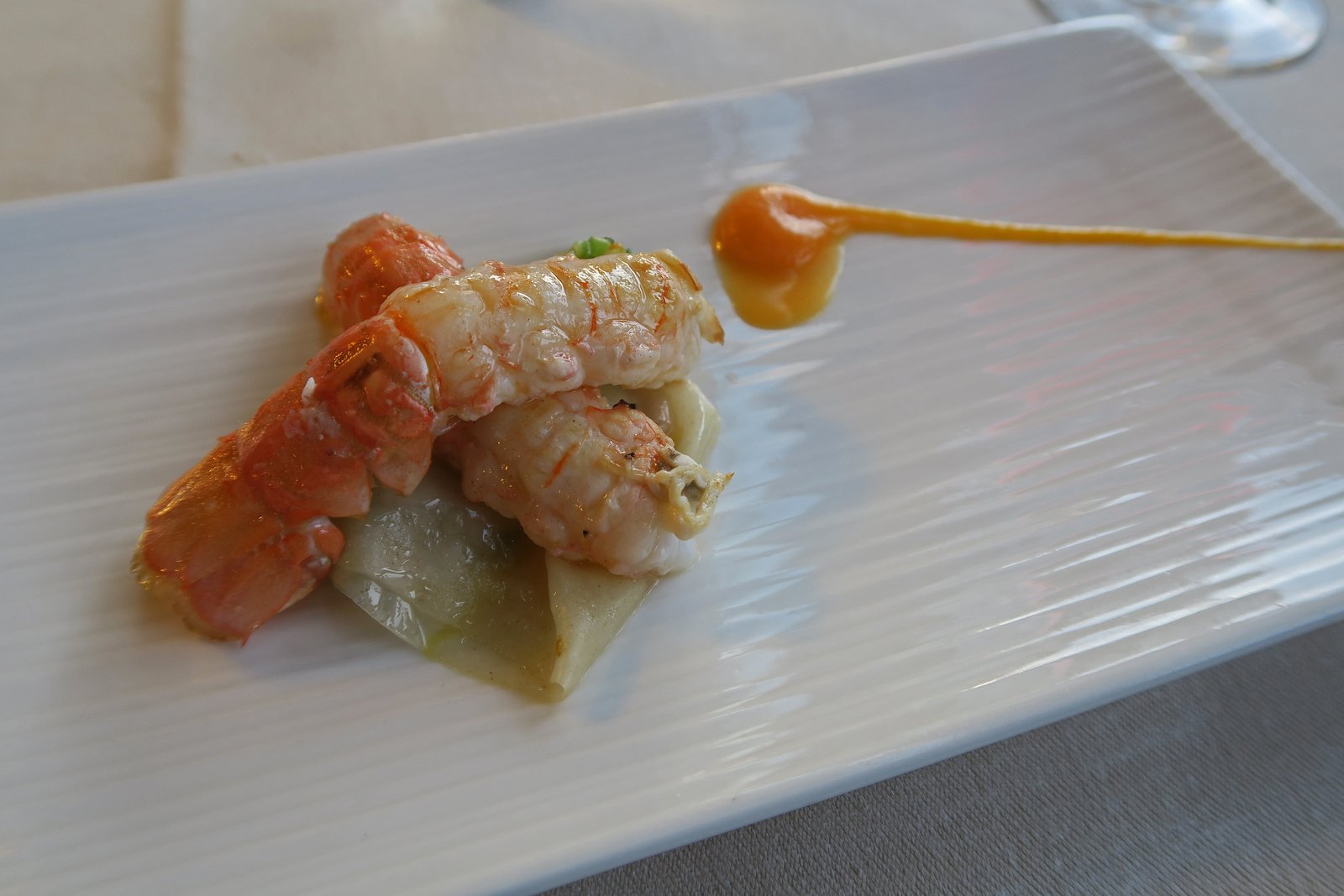 More of a very shrimp-y croquette than what I understand traditional Txangurro is supposed to be, if you like the true taste of shrimp/prawns/langoustine you'll like this. Even the condensed flavor of the aspic.
