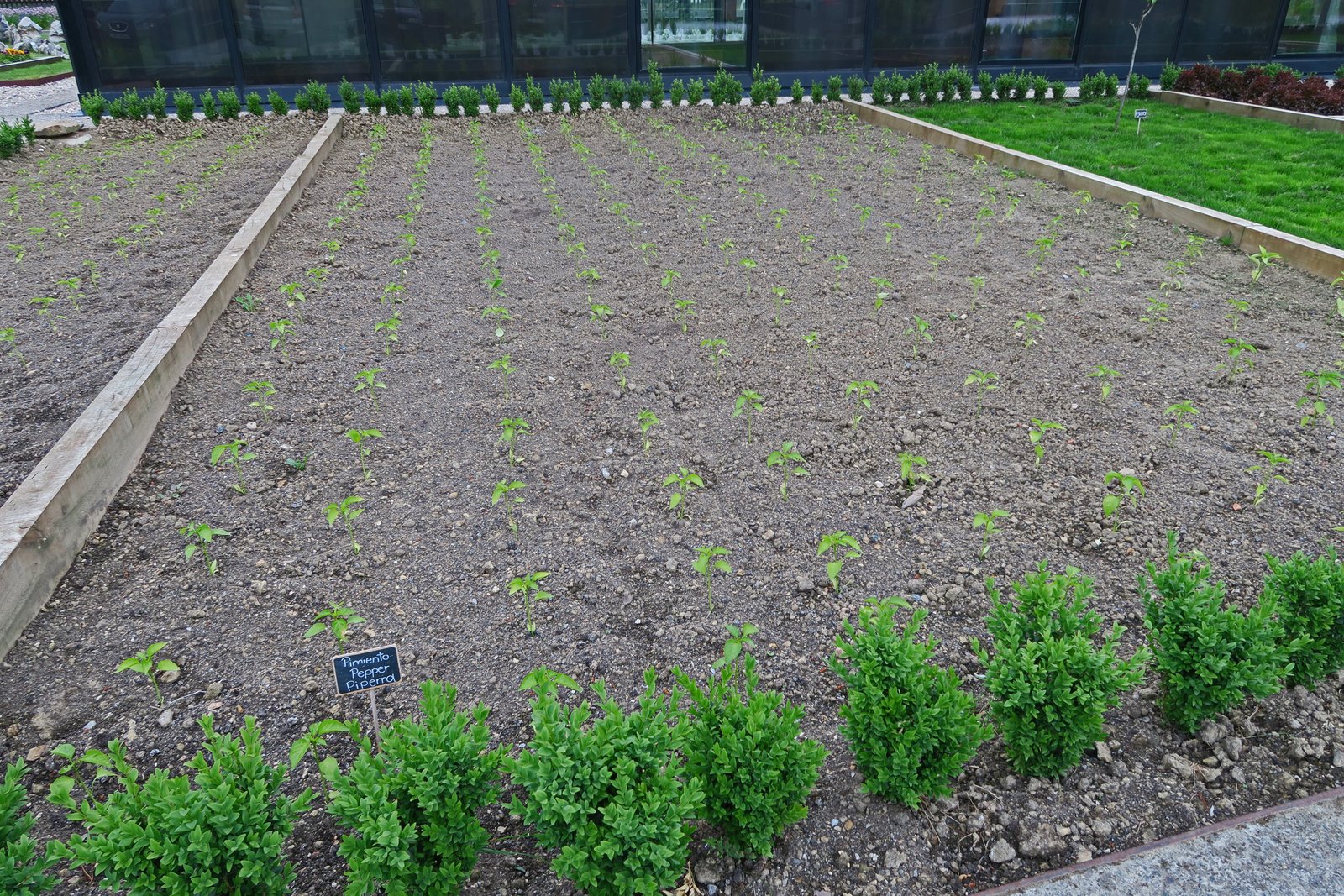The garden is so orderly that it puts our scraggly back yard pot and dirt collection to shame.