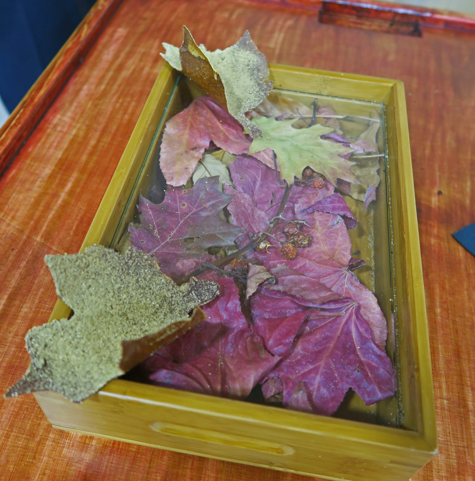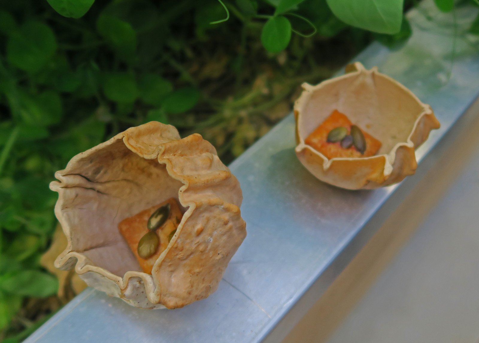 The two "leaves" on the edges were made from walnut and mushroom, two disparate "earthy" flavors that worked really well in crisp form.