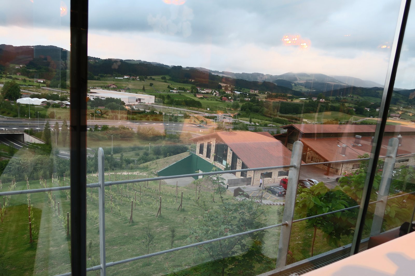 For the crown jewel of our "trifecta" of planned dinners in Spain, I chose Azurmendi. Not because of the three Michelin Stars, but because of the set-up of the restaurant. The location is actually in Larrabetzu, about a 20 minute cab ride from Bilbao. The all glass building, designed by architect Naia Eguino sits on top of a hill via a single lane winding road, with wonderful views.