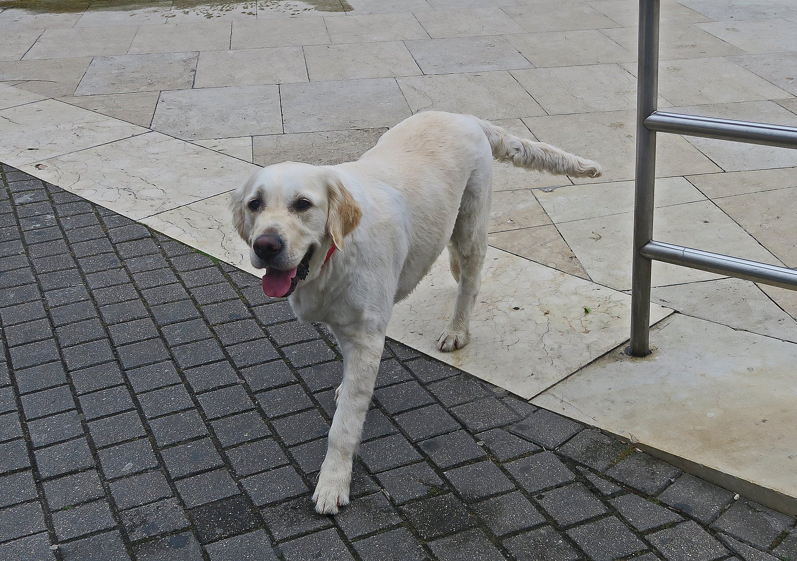It seems that all dogs walk off leash here….they are very well behaved. Here's a really friendly one!