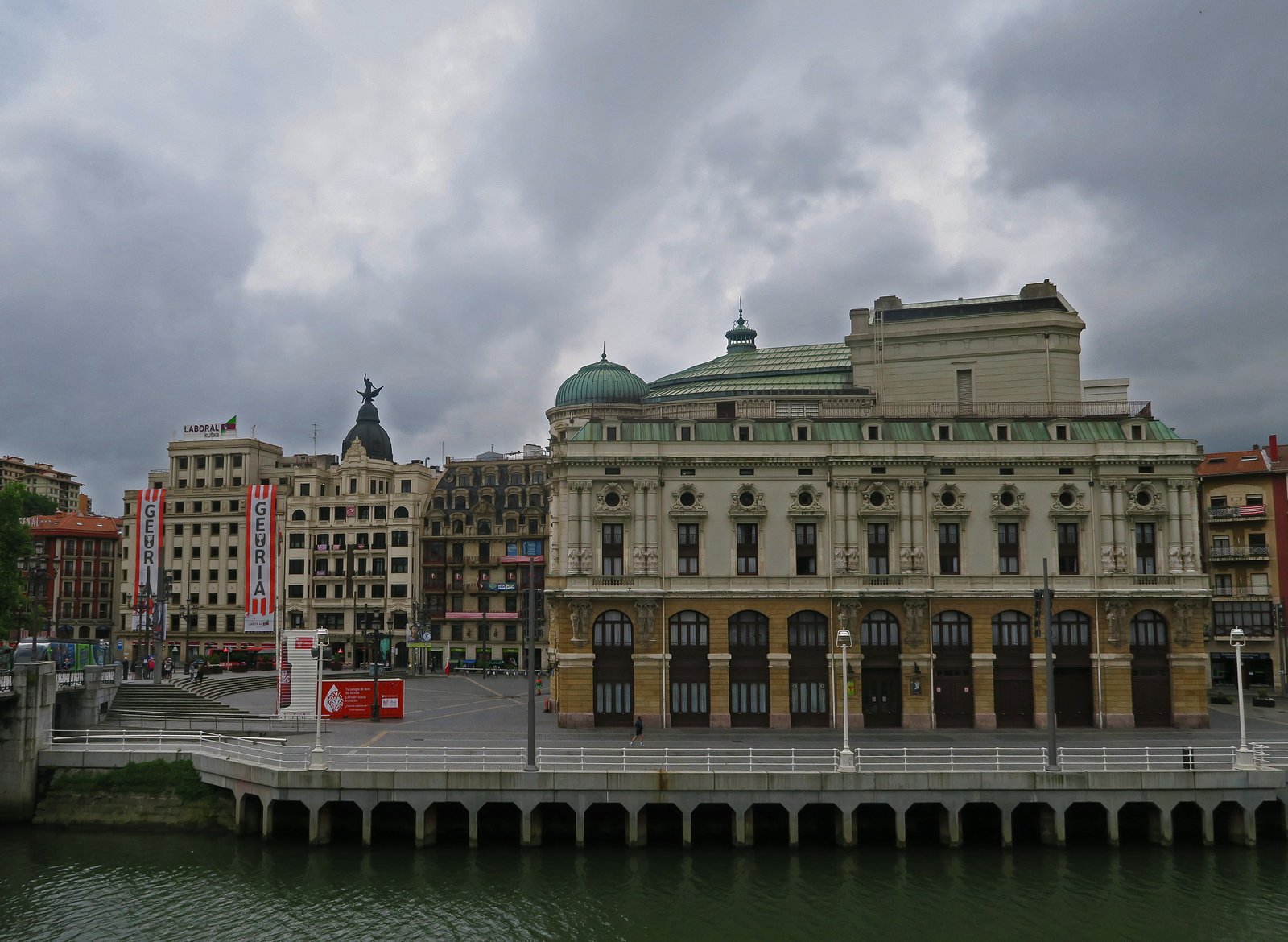 That's the Teatro Arriaga in the foreground, which greets you as you cross over the river.