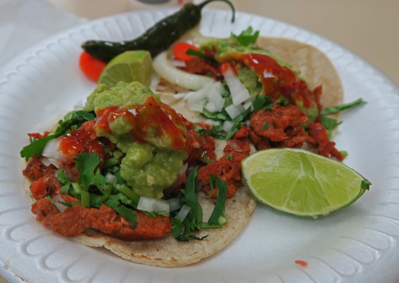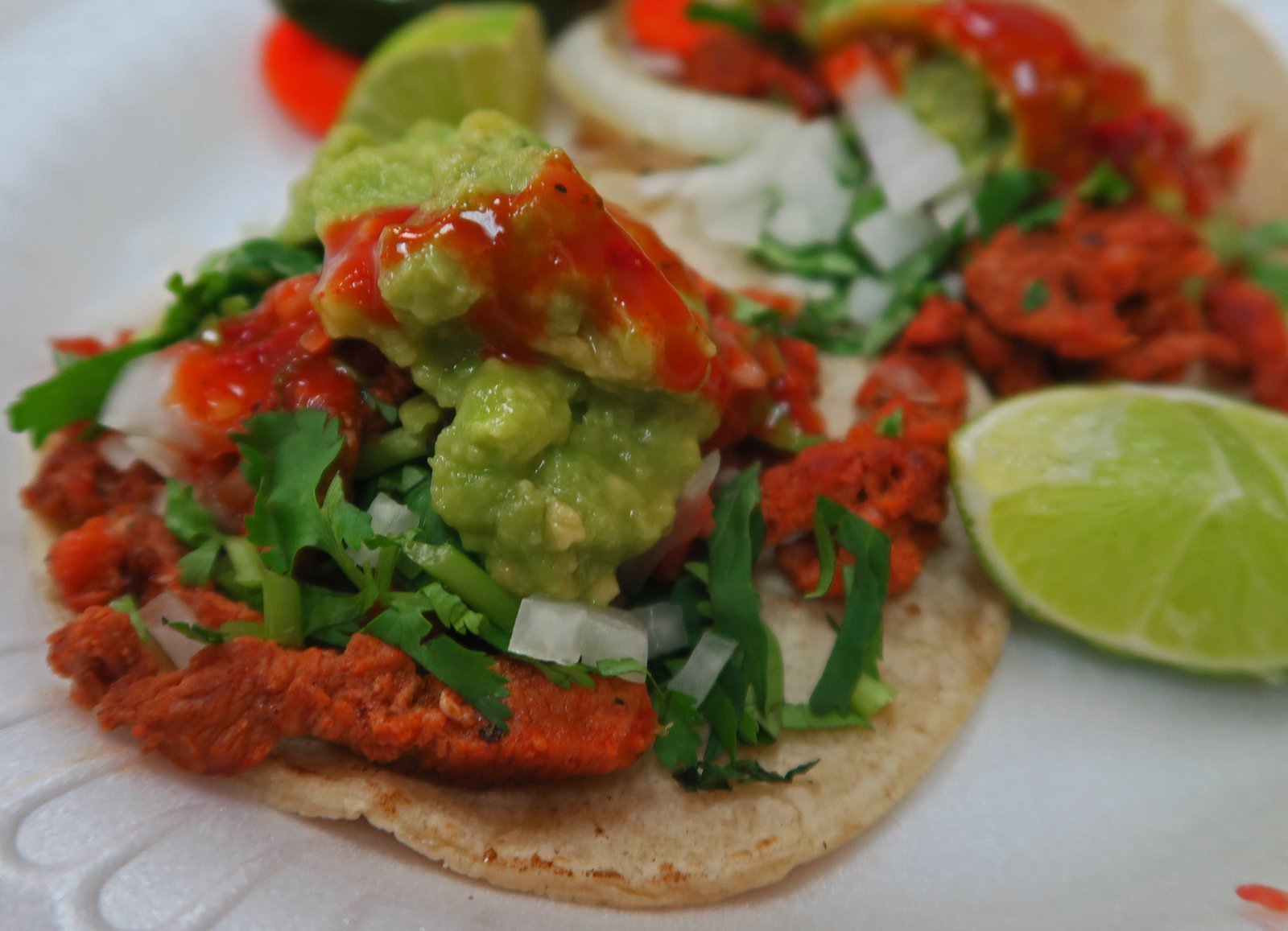 The same $4.50 got me this – two small Al Pastor tacos.