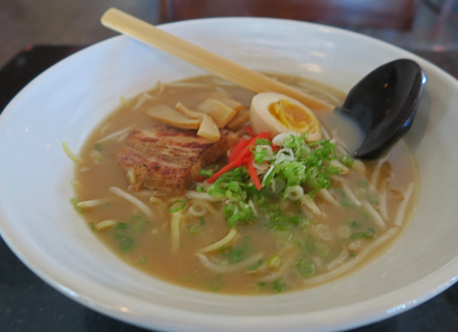 I'd consider this, with consideration as a work in progress, as lower second tier ramen. The egg was fine; in fact much better than what I'd recently had at RakiRaki. The Chashu was decent. The noodles were typical wholesale ramen noodles and were overcooked. The broth was an uneven mixture of tonkotsu base with shoyu. It was much too thin, definitely lacking in richness, though the temperature was good.
