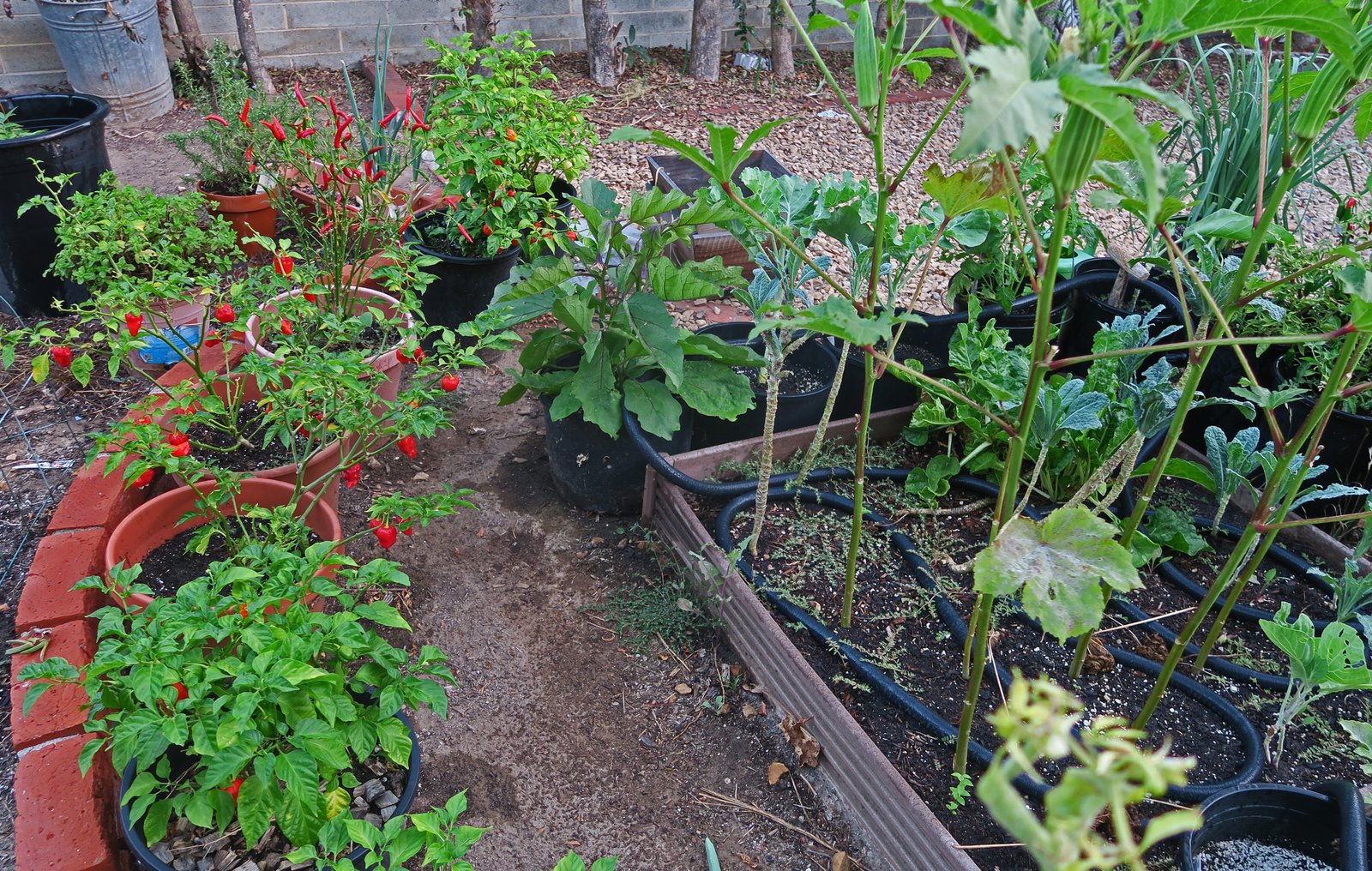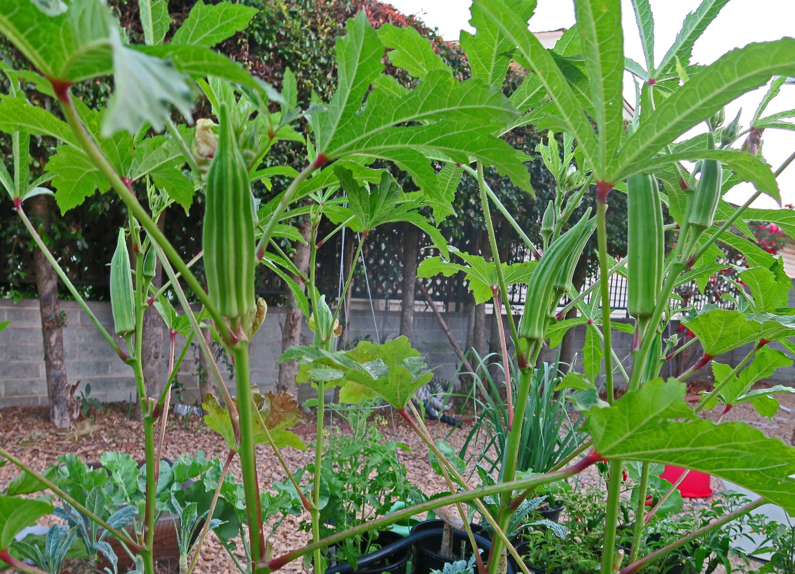 Like everyone else in SoCal, we've been reducing our water usage….so far so good…drip hoses and such….it seems the okra don't really mind…..