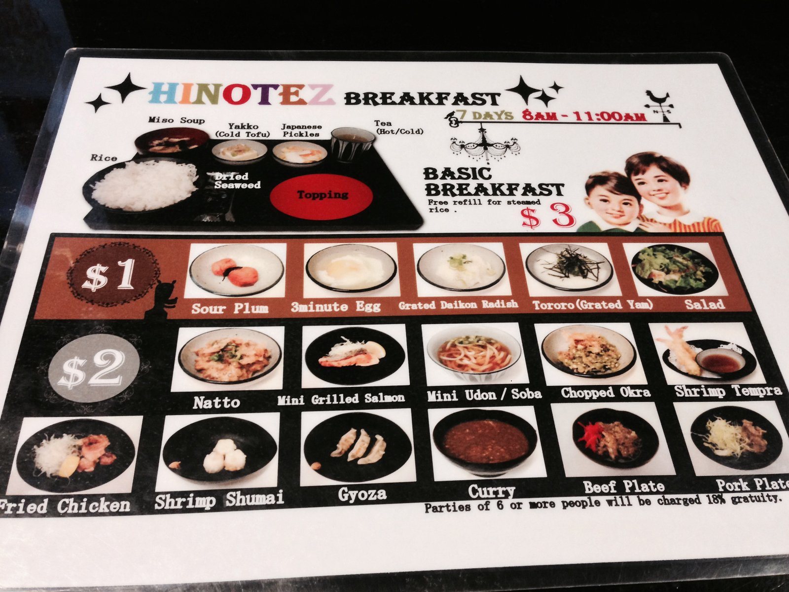 I get the three minute egg (not quite the raw egg, but it'll do), natto, and for some reason I love the extra "goo" of tororo (grated mountain yam). If anything, it's too much rice for me. I think in the future, I'll ask for less rice and more green onions.