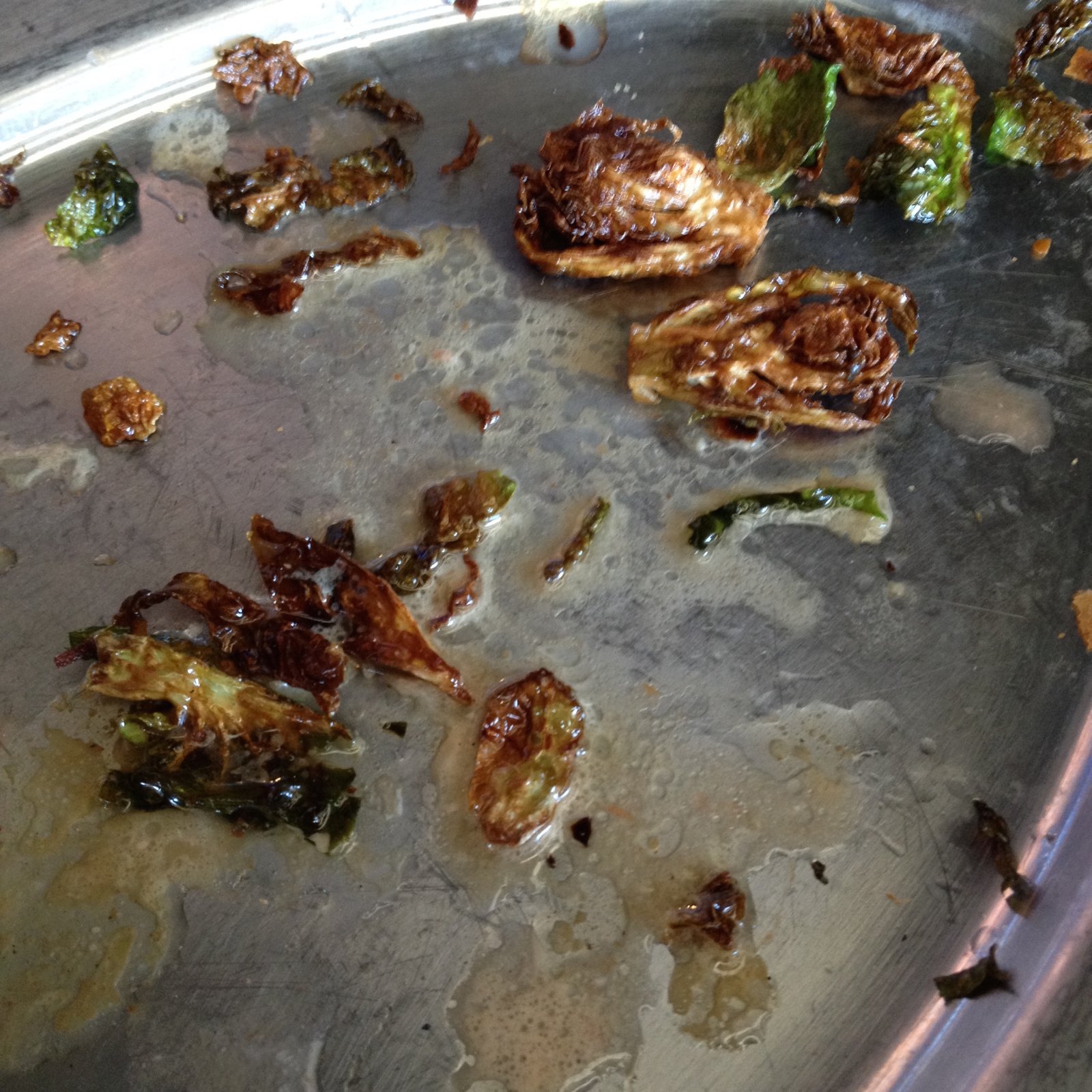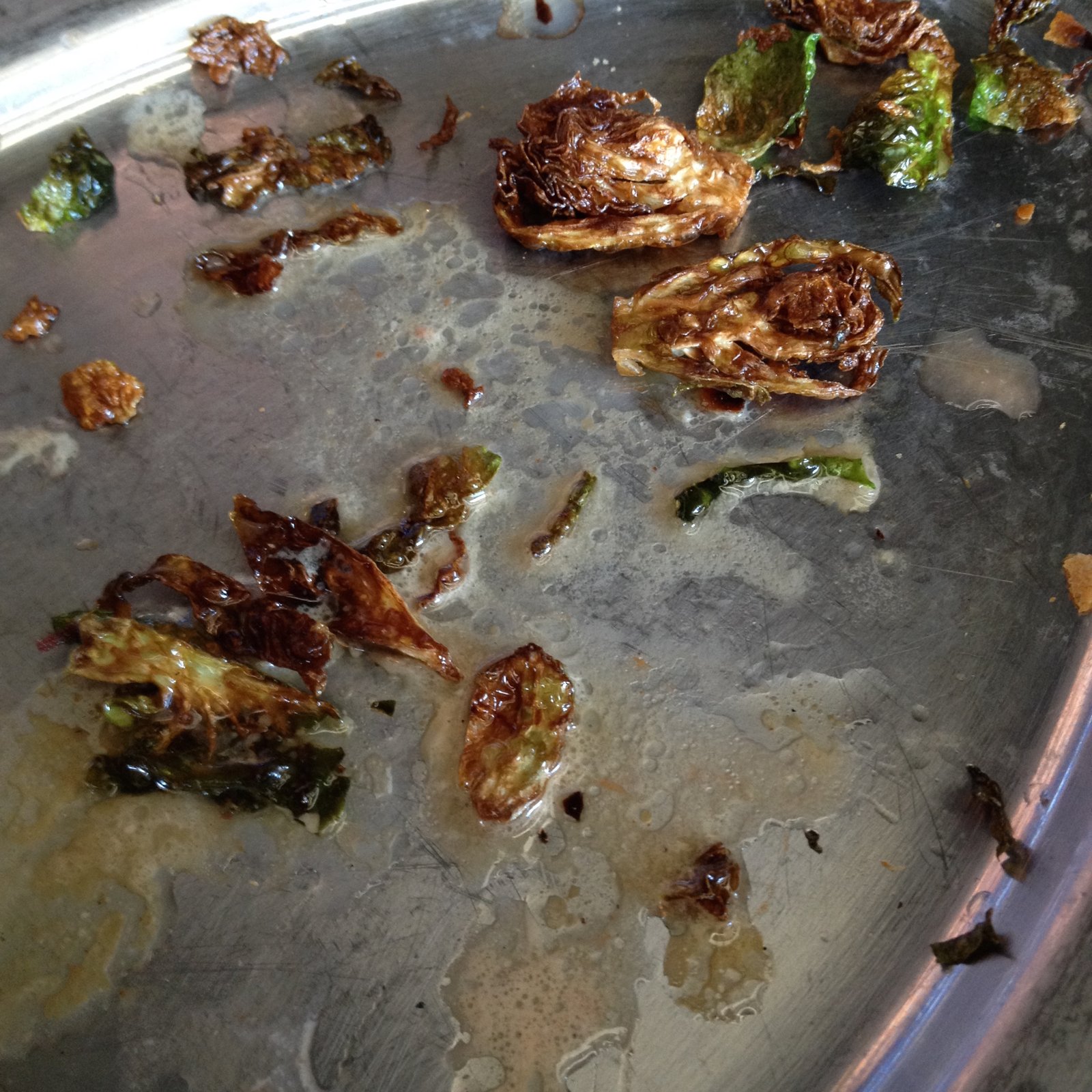 Above, crispy remnants of brussels sprouts…which were cleared up after this photo was taken. {Lately been frying and using brussel sprouts leaves as a topping at our home cooked meals. This is a great idea}