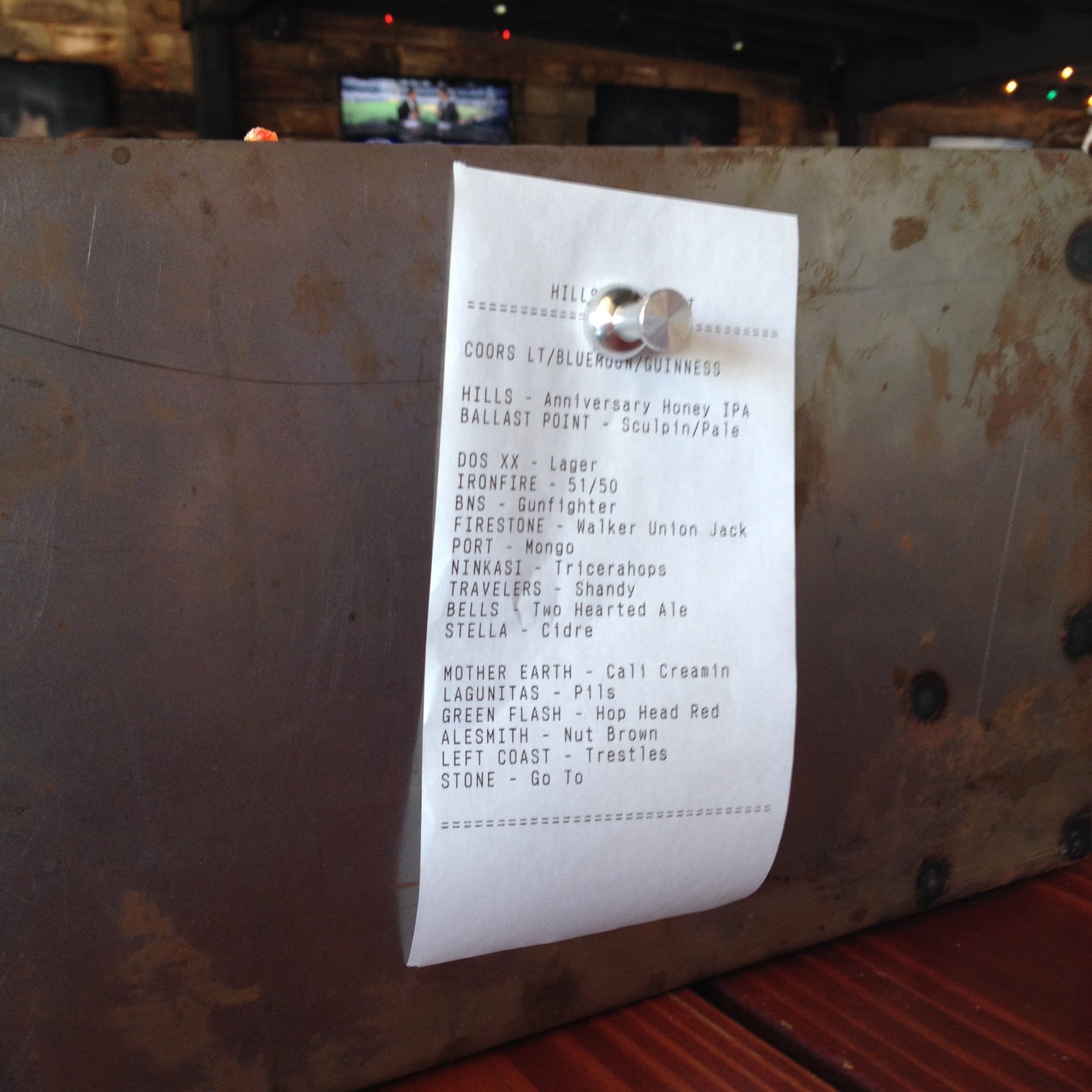 The beer selection is updated regularly and is quite extensive. Each tabletop condiment container has the current listing.