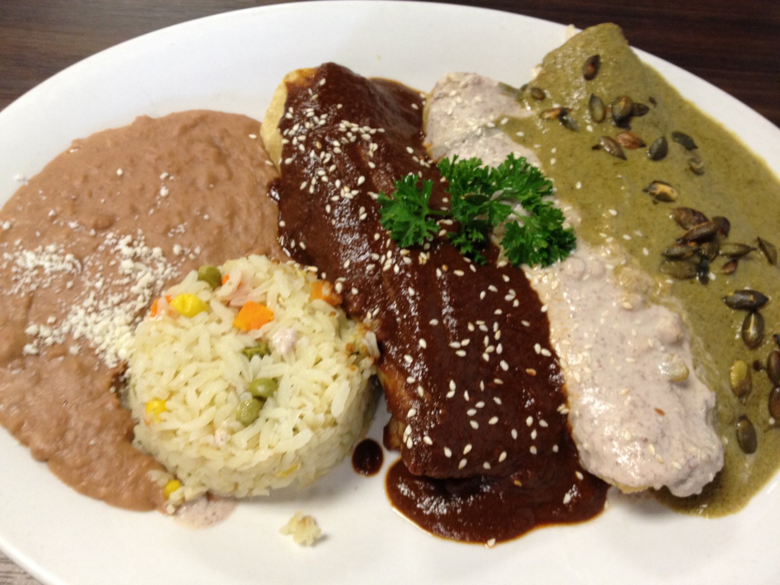These three moles served over chicken enchiladas from Rana's (again, I have a post forthcoming) are each wildly unique: the red mole is poblano chili based and, like the other two, is made with more than 20 ingredients, the white mole has pecans in its base while the green mole uses fresh herbs, tomatillos and sunflower seeds. Each is wonderful on its own and when I can't decide..well the 'Tricolor' plate is my choice.
